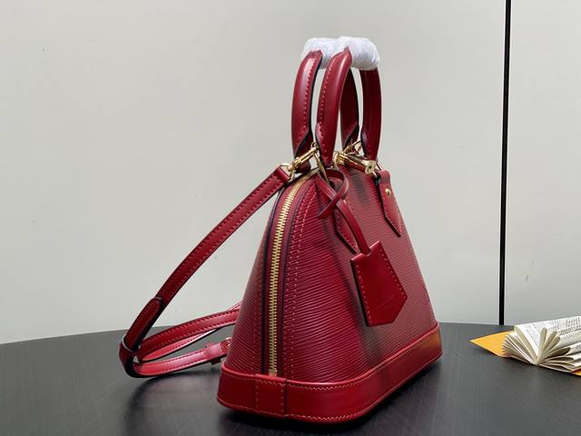 出厂价p 顶级原单 M25562酒红 水波纹贝壳包 Alma Bb 手袋 借鉴1934年的原始设计,这个永恒的Alma Bb版本属于返校系列。它由颗粒状Epi皮革制成,细节光滑的手柄和装饰,包括一个标志性的钥匙铃。金色的硬件增添了别致的饰面,风格顶部有一个标志性的挂锁。它可以以多种方式佩戴,并配有内袋,以保证贵重物品的安全。23.5 X 17.5 X 11.5 厘米 长度X高度X宽度 DDD