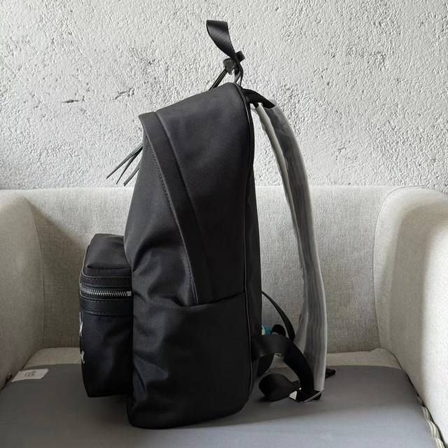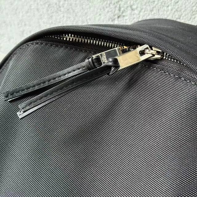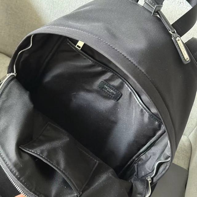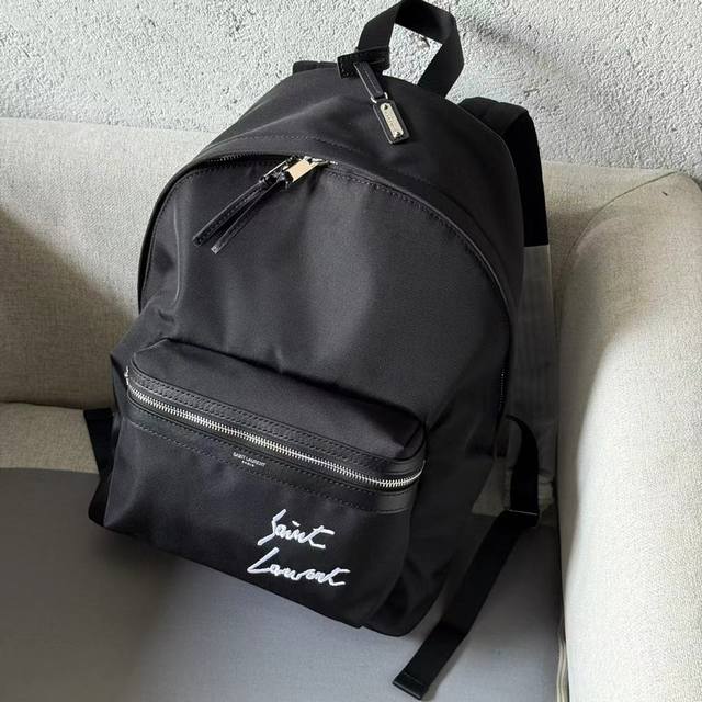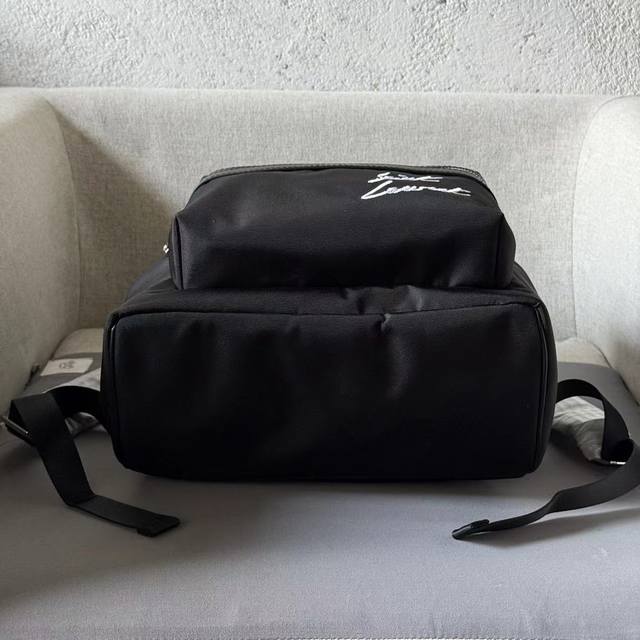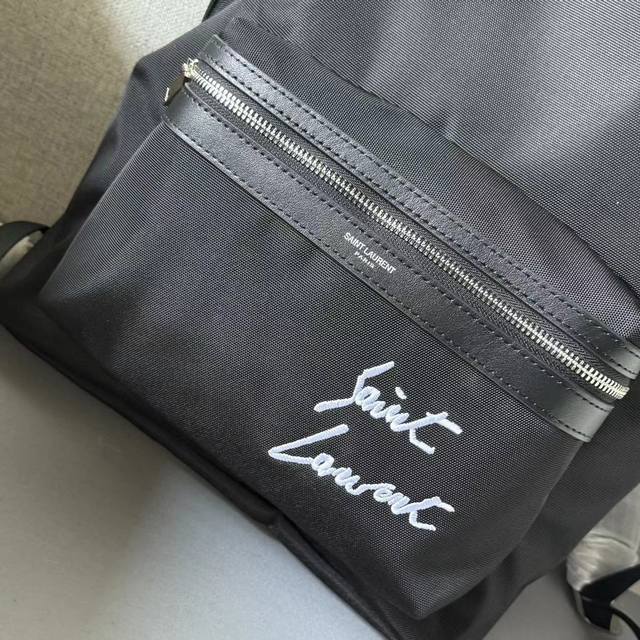 带真皮装饰背包,配有带圣罗兰压花标志拉链外袋、拉链隔层及带衬里插袋。 DDD 尺寸:31X41X22 Cm帆布衬里 双拉链扣 氧化镍五金 DDD 可调式软垫肩带 DDD 顶部提手配有可拆卸真皮肩带和镌刻圣罗兰标志金属贴片背面外插袋 DDD 型号113 DDD