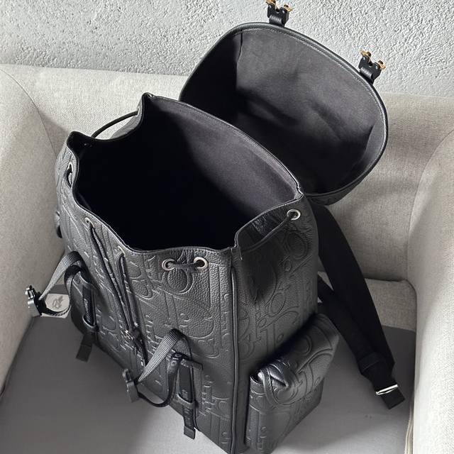这款 Dior Hit The Road 翻盖双肩背包将现代风格与Dior的高订精神融为一体。Dior Gravity 印花效果皮革采用压花工艺将经典图案精致地呈现于黑色牛皮革之上,点缀以黑色粒面牛皮革细节,正面饰以Dior 标志,彰显Dior 工坊的精湛工艺。搭配两条 Christian Dior标志尼龙提花饰带、带翻盖的宽敞主隔层,以及两个侧面磁性翻盖口袋。款式实用,可优良搭配各式休闲造型。 DDD 型号8968 DDD 尺寸43-43-18 DDD 尼龙内部 DDD 主隔层搭配翻盖和抽绳内部扁平电脑