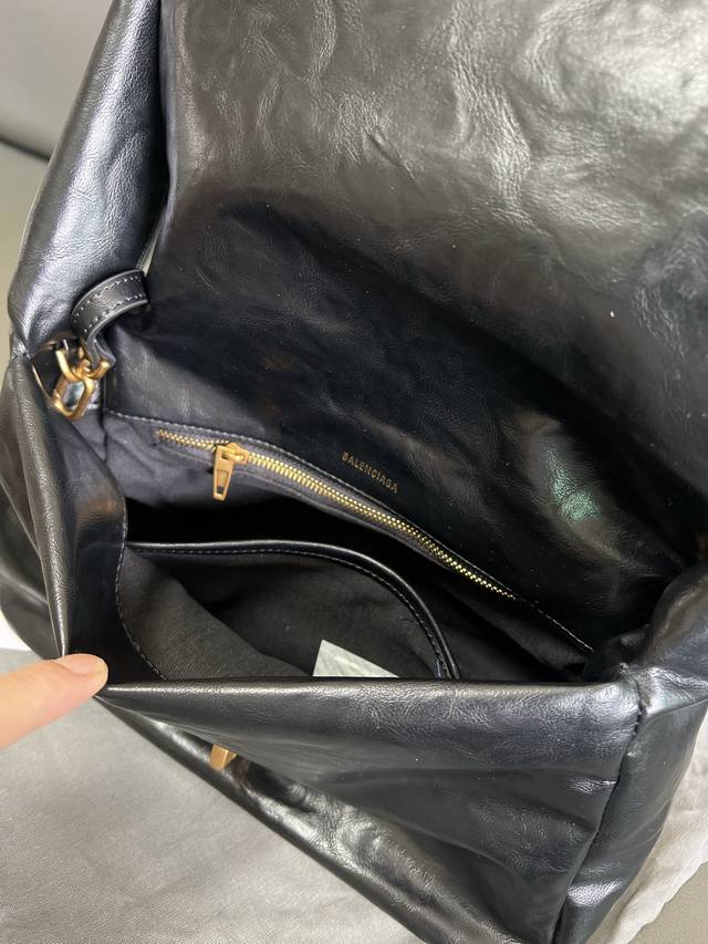 配盒 Size:38*24Cm 大号 Balenciaga 机车包也太好背了叭 皮质超级柔软! 自带褶皱肌理感很耐造哦! 随便乱背都帅的Balenciaga L