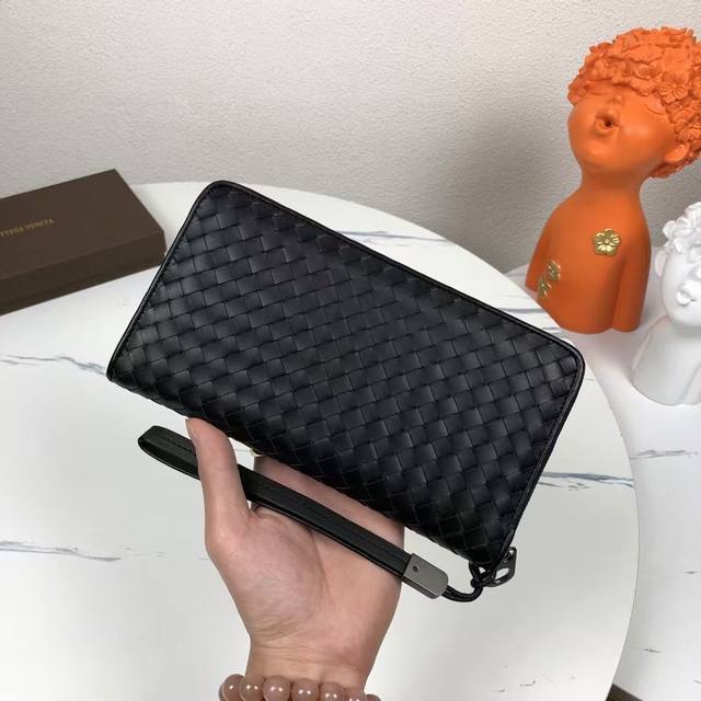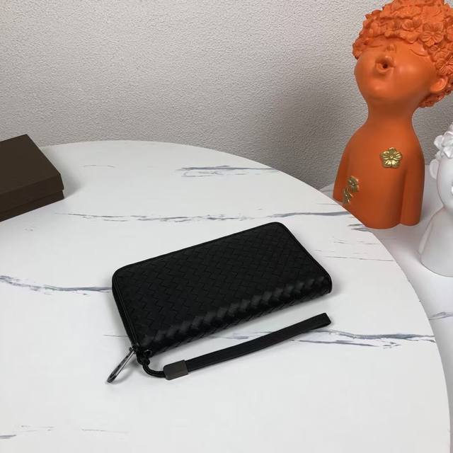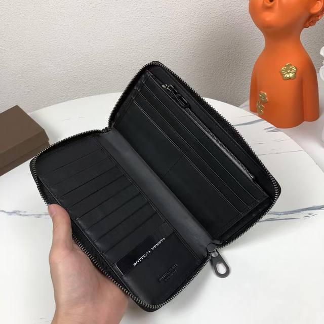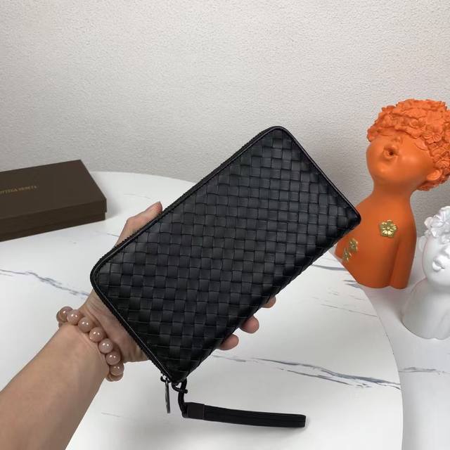 Bv葆蝶家钱包采用进口打蜡牛皮纯手工编织皮质越用越柔软光滑细腻 大号编制 ,颜色:黑色,规格:19 10 2Cm。