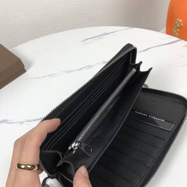 Bv葆蝶家钱包采用进口打蜡牛皮纯手工编织皮质越用越柔软光滑细腻款号:1256# 中号编制 ,颜色:黑色,规格:19 10 2Cm。