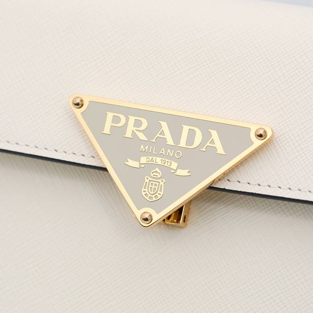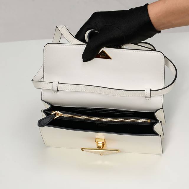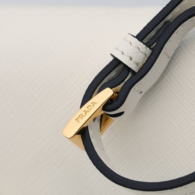 / 顶级原单 新品手袋1Bd386 白色Mini款这款迷你手袋采用Saffano牛皮革打造。结构化的轮廓配有内部口袋和卡槽,并以金属标志性的三角形装饰闭合处。配有一