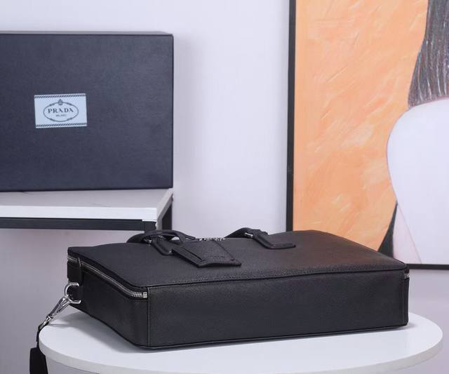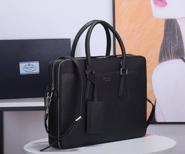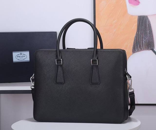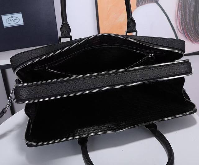 原厂原皮 prada 0369 意大利进口牛皮 欧洲Zp同步五金 可拆可调式皮肩带 配拉链开合的专用隔层 一个拉链袋 两个手机袋 织物衬里 带有165代工码商务休闲 高富帅必备 尺寸 36*28*8 DDD