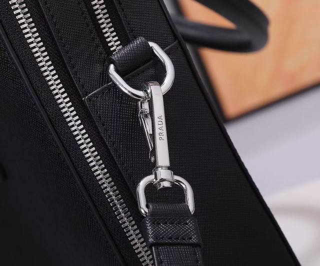 原厂原皮 prada 0369 意大利进口牛皮 欧洲Zp同步五金 可拆可调式皮肩带 配拉链开合的专用隔层 一个拉链袋 两个手机袋 织物衬里 带有165代工码商务
