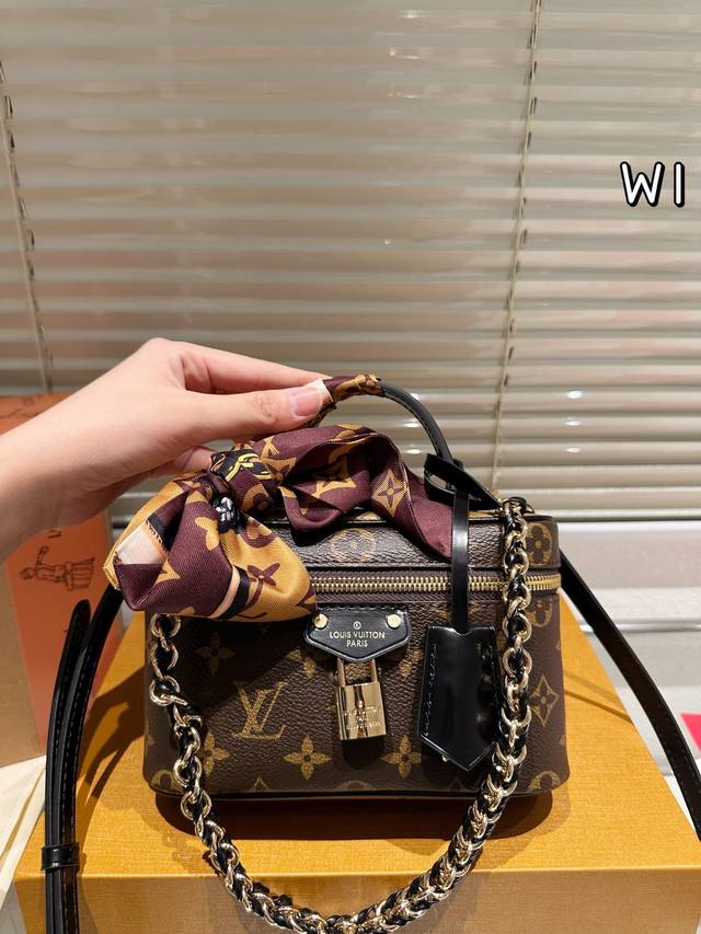 原单配丝巾 飞机盒折叠盒全套包装 Lv老花牛角包单肩斜挎中古 Vintage包包V老花村上隆限定薇薇安女包Lv老花限定...