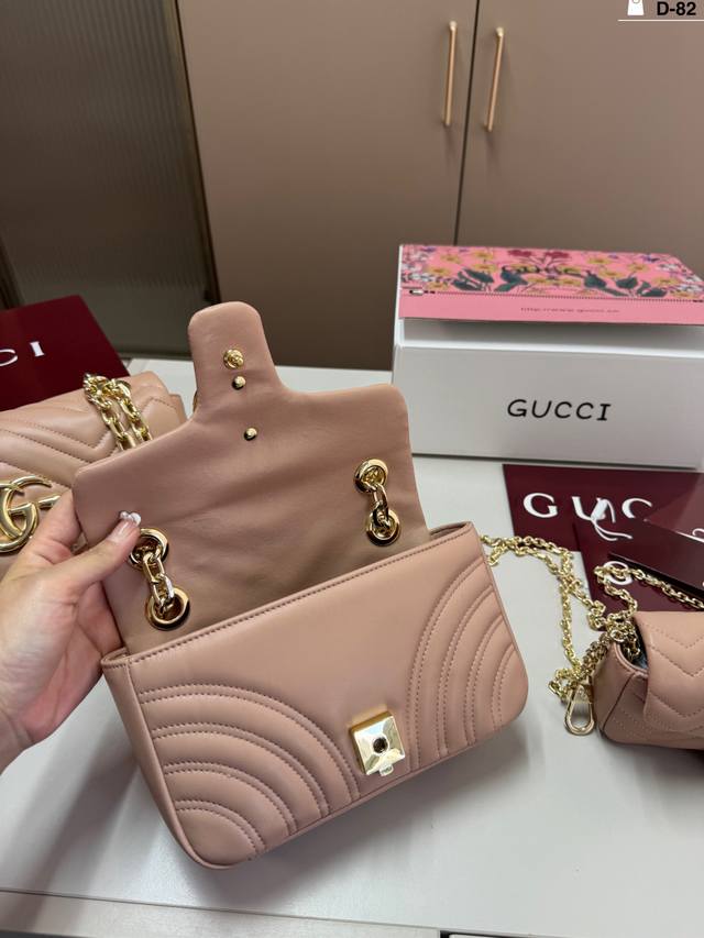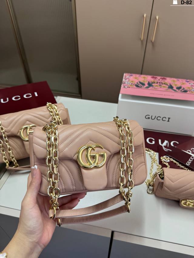 中 D-82尺寸25×13 22×12 17×9折叠盒飞机盒 酷奇Gucci马蒙链条包 容量真的很够用 个高的姐妹们可以闭眼入 真的是穿什么衣服都可以搭配