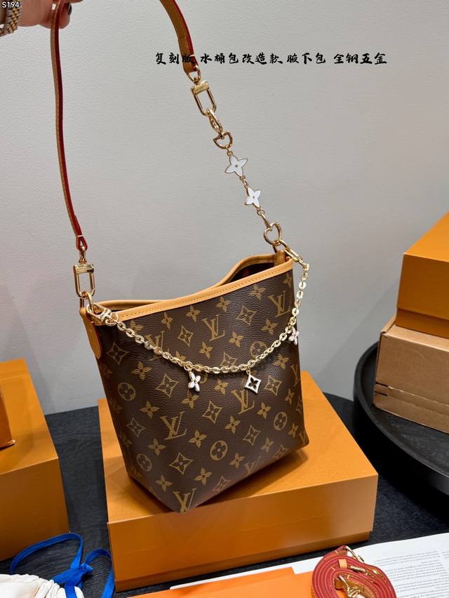 / 礼盒包装 复刻版 全钢五金! Lv水桶包改造款 经典Monogram老花帆布 +牛皮饰边,复古又高级
