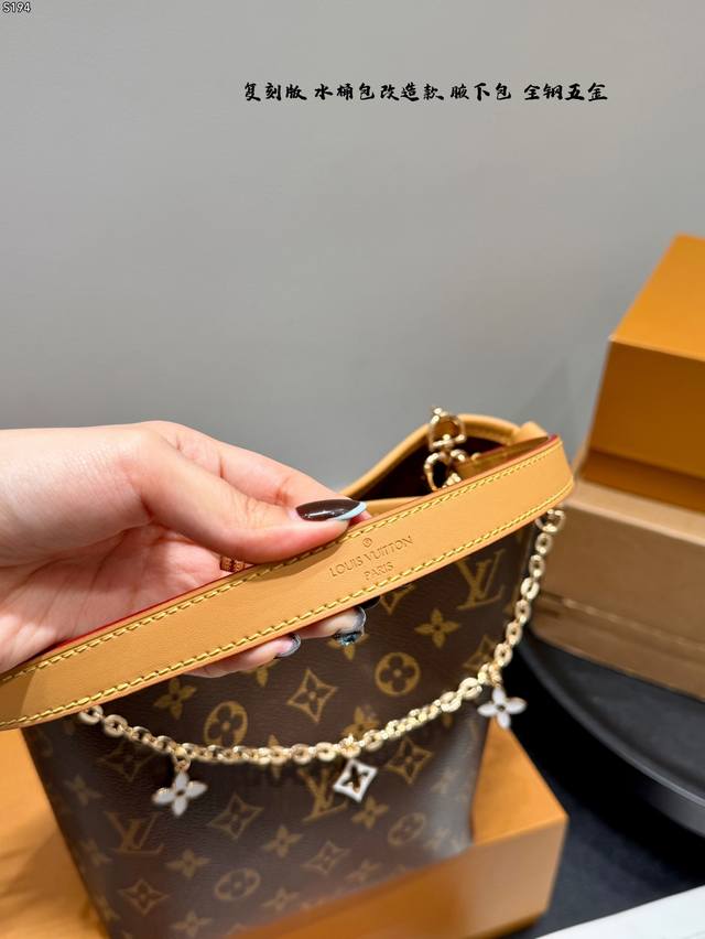 礼盒包装 复刻版 全钢五金! Lv水桶包改造款 经典Monogram老花帆布 +牛皮饰边,复古又高级