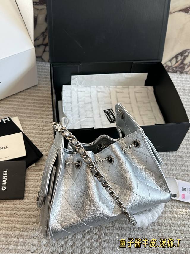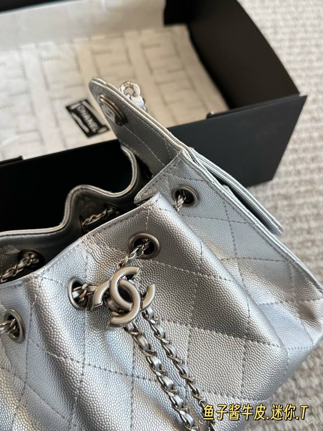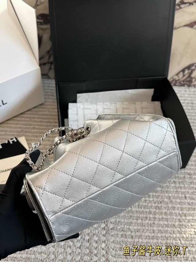 牛皮鱼子酱 折叠盒尺寸13.18 香奈儿Chanel 24C迷你小书包 Mini双肩包
