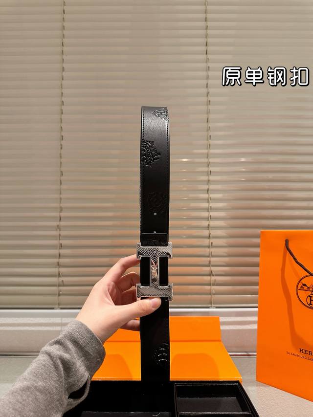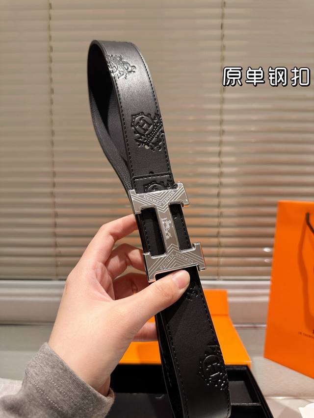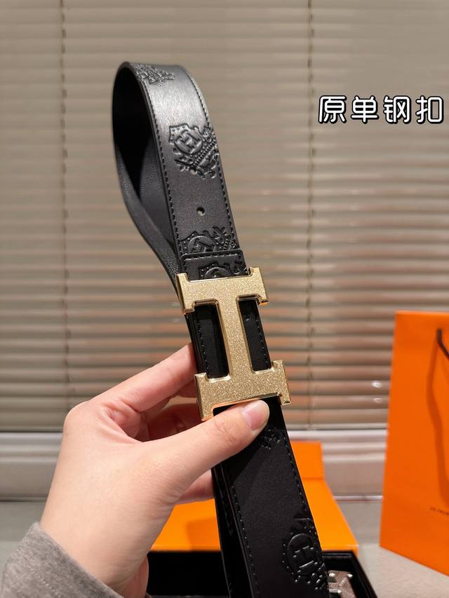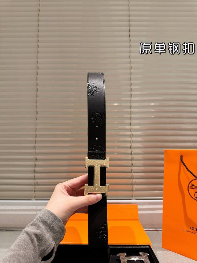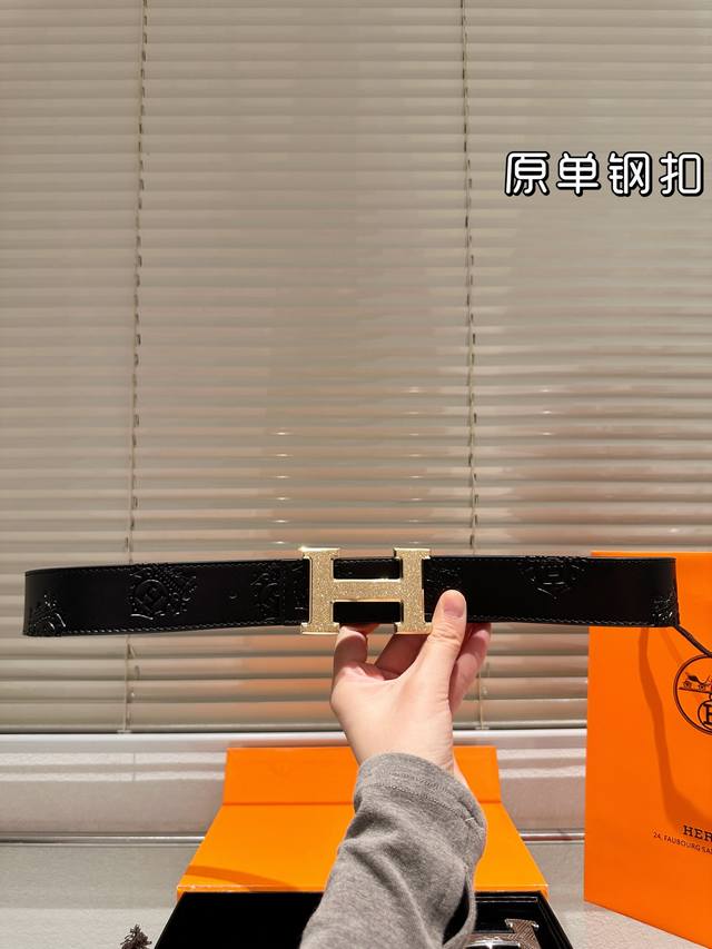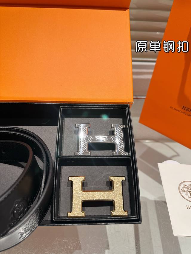 双头 钢扣 高版本!腰带 爱马仕牛皮皮带~热门款 男女通用皮带里面最火的版本啦~质量很好 全套包装!五金绝对不褪色 皮带头和专柜一样的哦~ 配礼盒手提袋发票