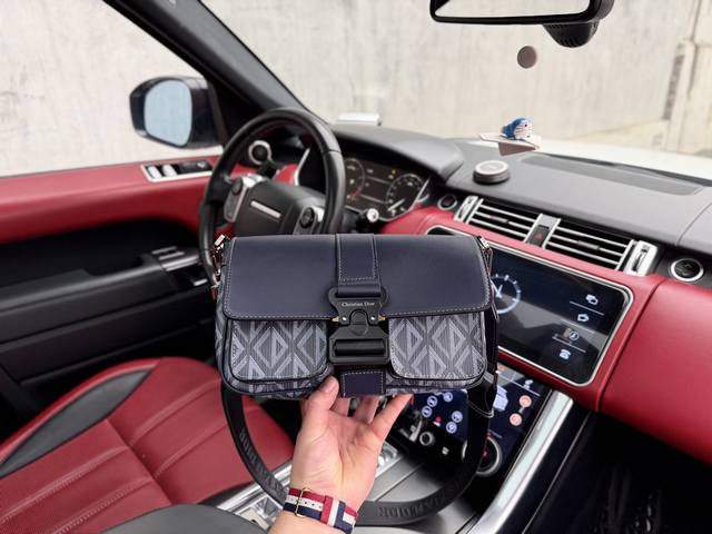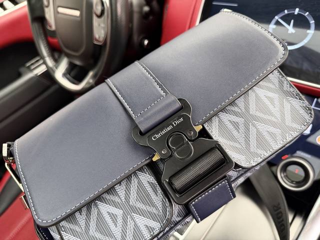 高端货 新款 “ Dior ”迪奥单肩包 Dior迪奥斜挎邮差包 Dhit The Road 压花标志立体线条菱形图案可调节可拆卸肩带 帆布拼光滑牛皮革 斜挎单