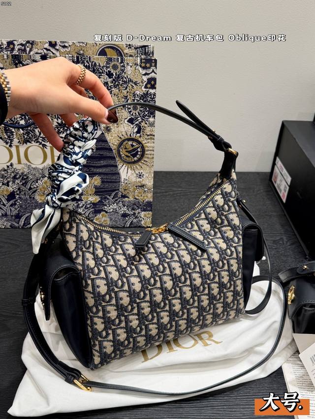礼盒包装 升级版!蓝色Oblique印花 迪奥Dior D-Dream 腋下复古机车包 秋冬系列,一上线就被美到,全新简洁的包形,复古又高级,侧面两个口袋的设计