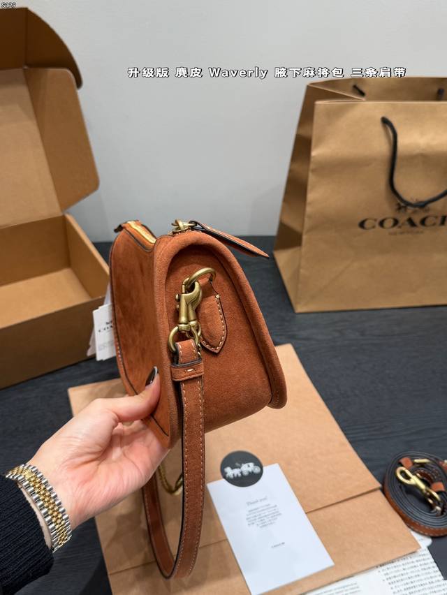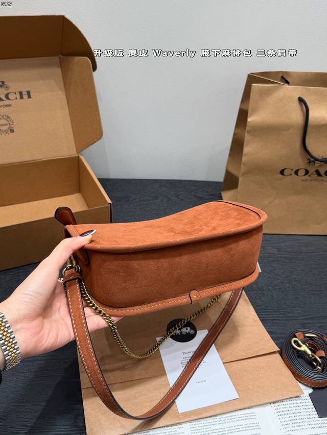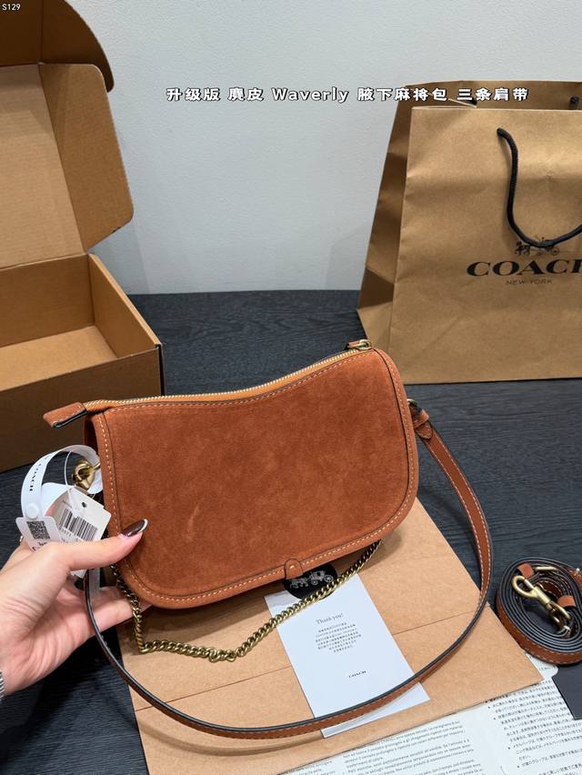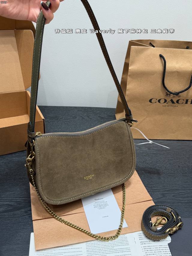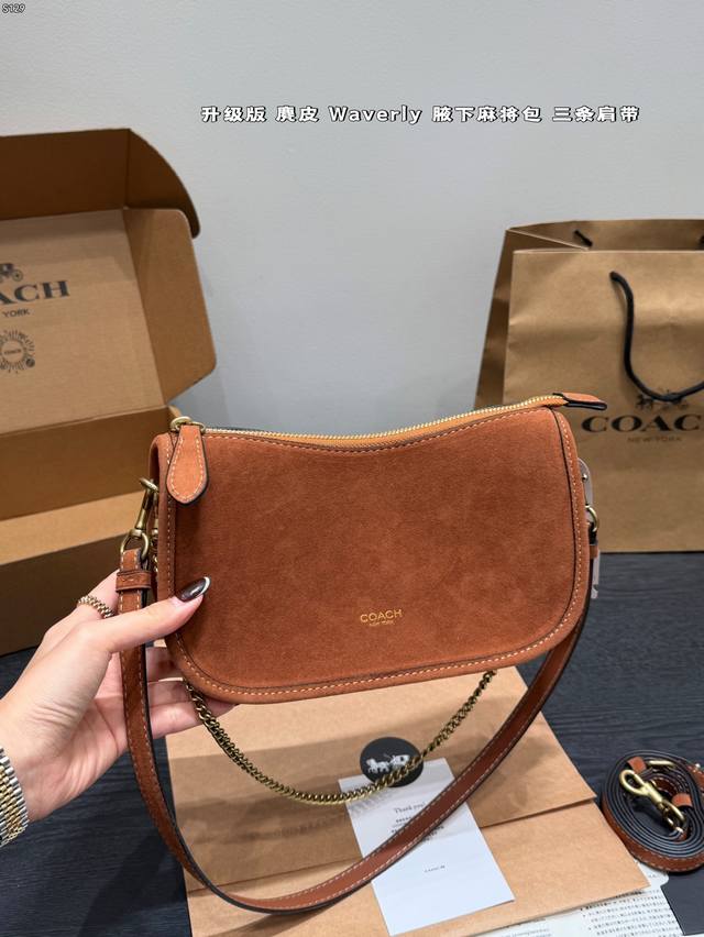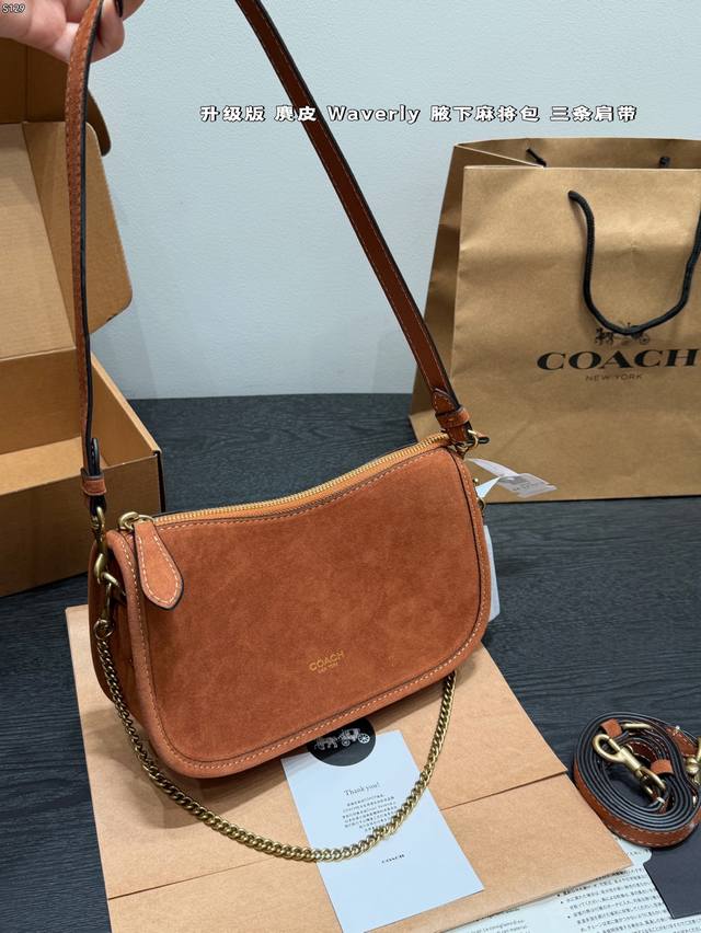 礼盒包装 升级版 !麂皮绒 Coach 蔻驰Waverly腋下包麻将包!复古又时髦。三条可替换肩带,手提、腋下、斜挎随心切换,超百搭!内部空间合理,手机、口红、