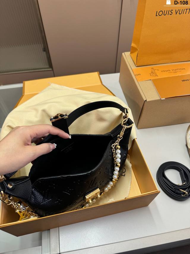 D-108尺寸21×12折叠盒 DDD Lv 路易威登pochette Mia手袋Lv pochette Mia手袋,容量大,通勤出行都很Ok!磁吸扣设计,取物超方便~肩带可调节,腋下背Or斜挎都好看,珍珠链条点缀,优雅气质满分。 DDD