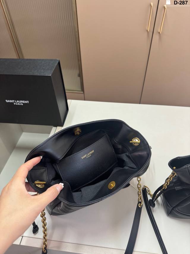 圣罗兰水桶 依旧简约的新款水桶包,抽绳搭配标志性logo,大容量设计颜值与实用并存 皮面质感高级,内配有可拆卸的小包...