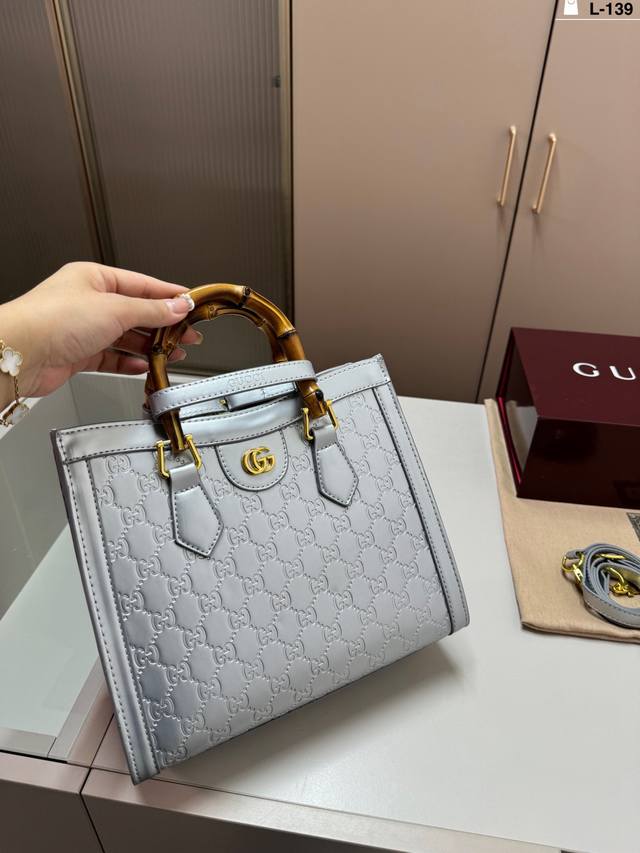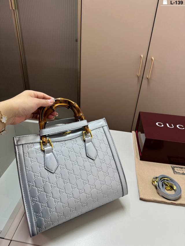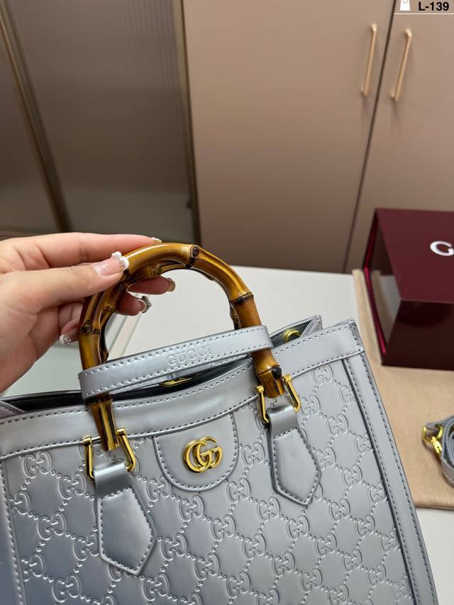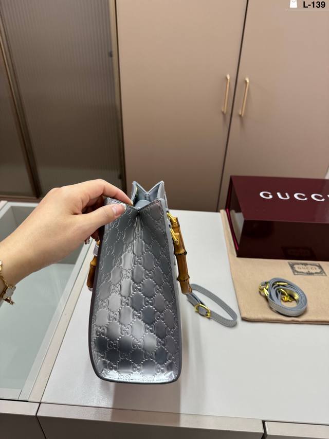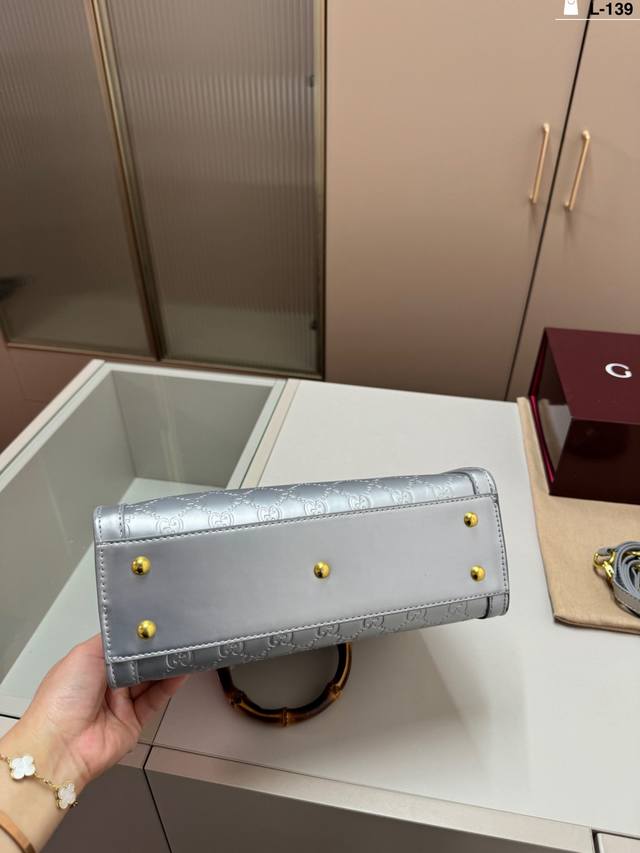 / L-139尺寸27×24折叠盒 酷奇Gucci竹节手提包 这个款复古韵味特别浓,上身效果也超赞,主要以精致特别的五金来提升整体质感