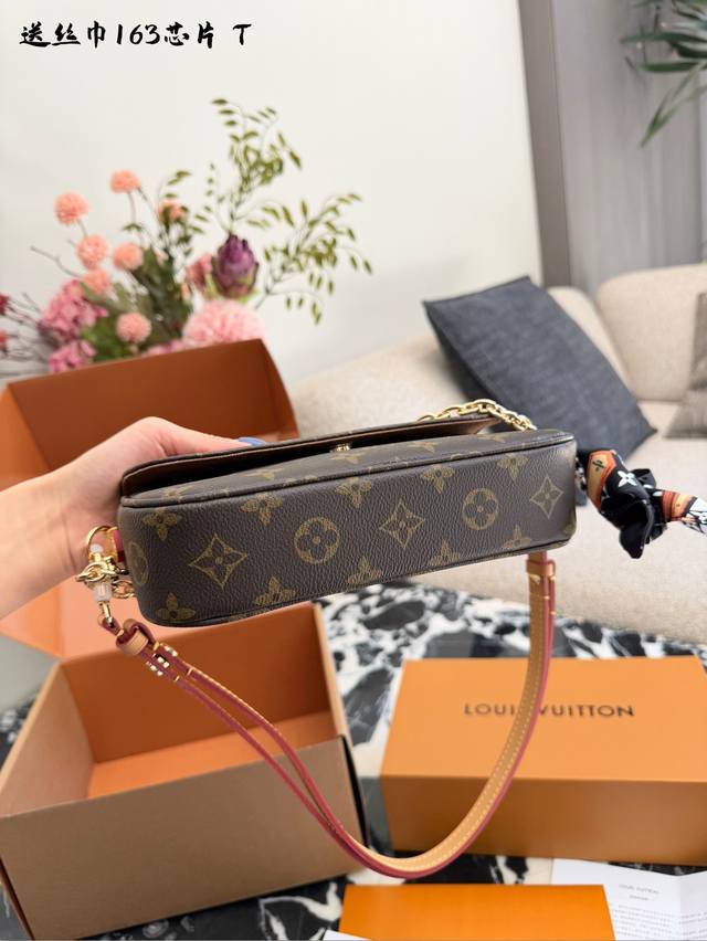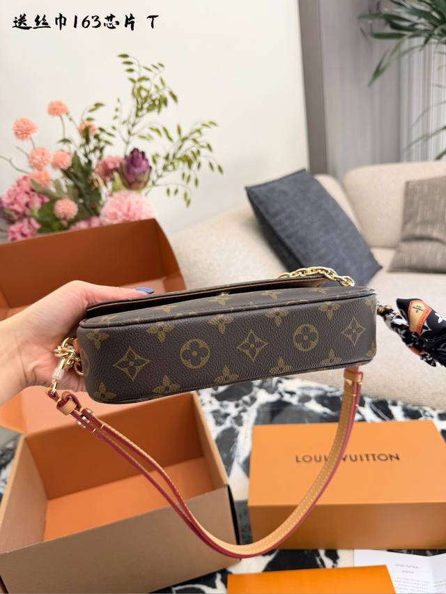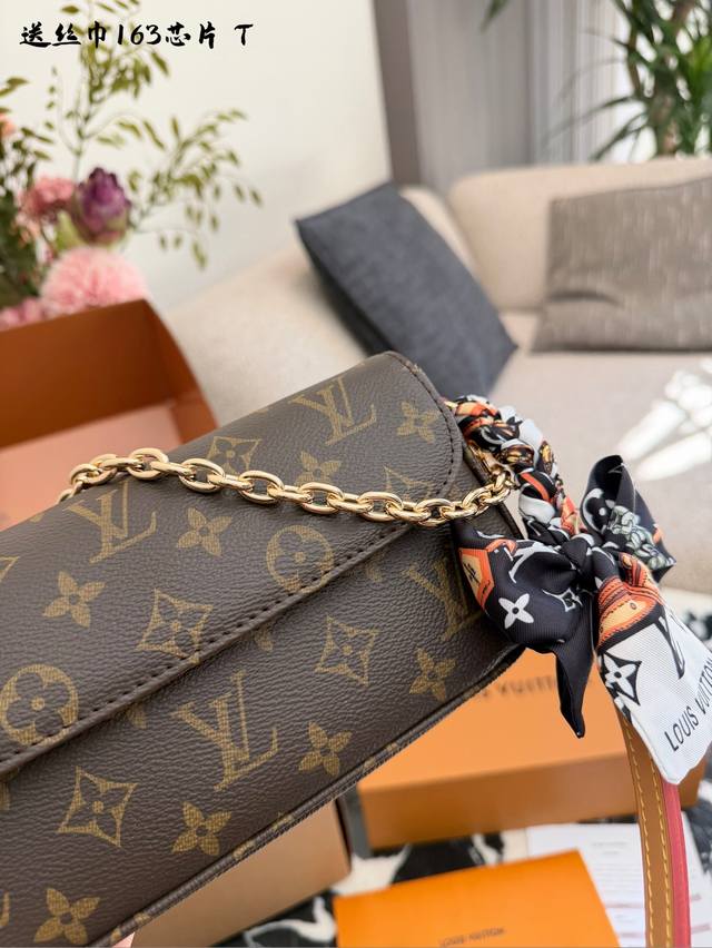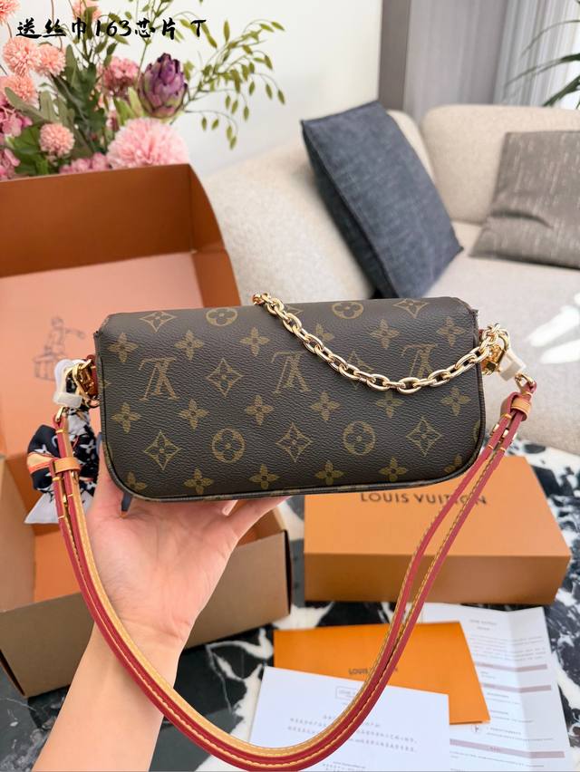 / Lv Ivy Woc手袋 Lv Lvy Woc手袋是路易威登 早春系列经典款,采用Monogram老花帆布+牛皮饰边,金属链条和皮质肩带可拆卸,支持斜挎、单肩、