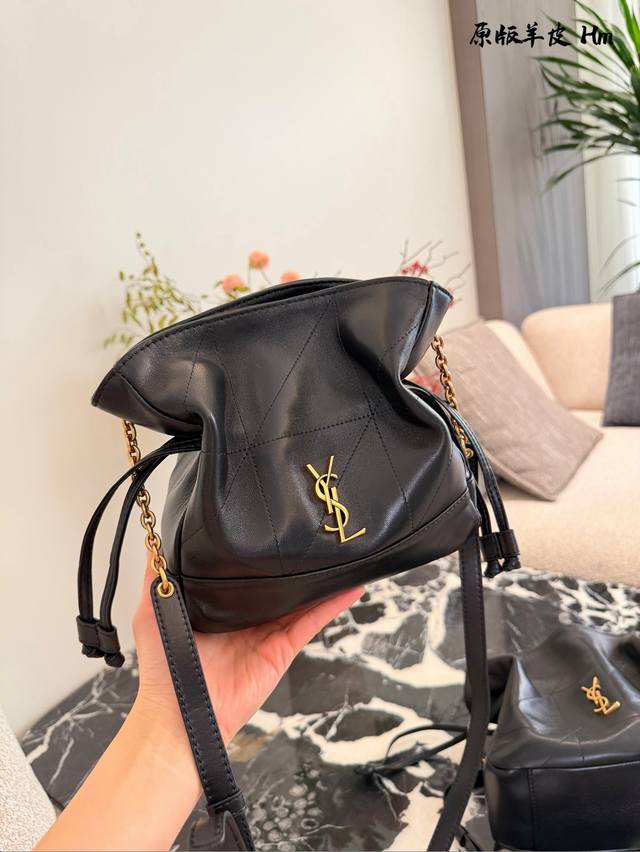 / Ysl Jamie福袋包 Ysl Jamie福袋包,柔软小羊皮+金色Ysl徽标,超有辨识度+。两侧抽绳设计,造型随心变,肩带可调节,单 肩斜挎都Ok小号26X1