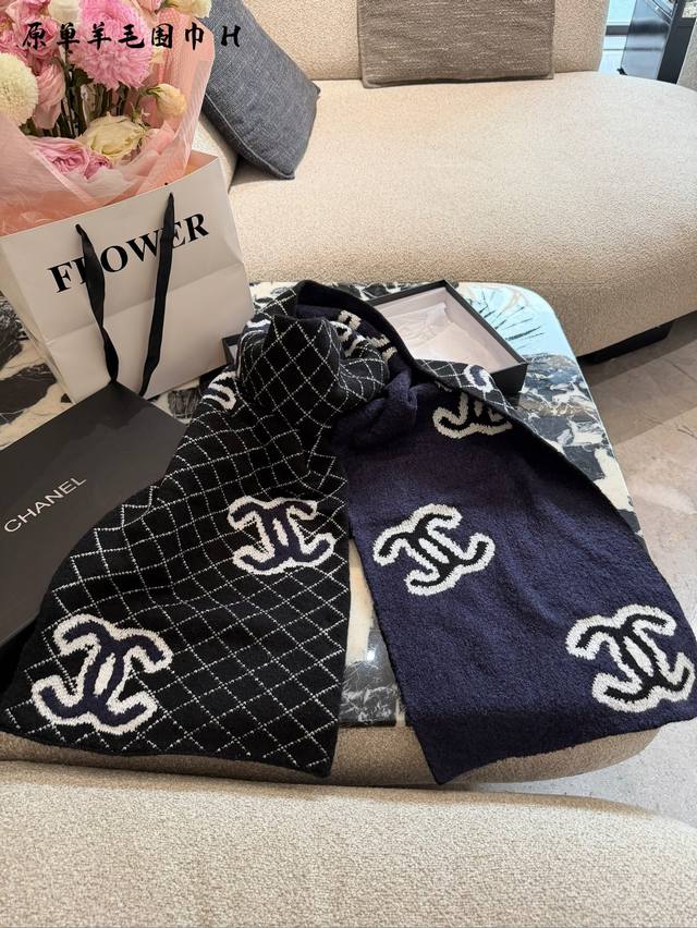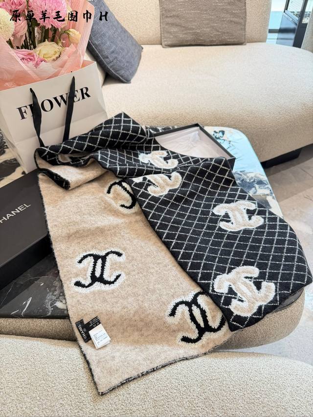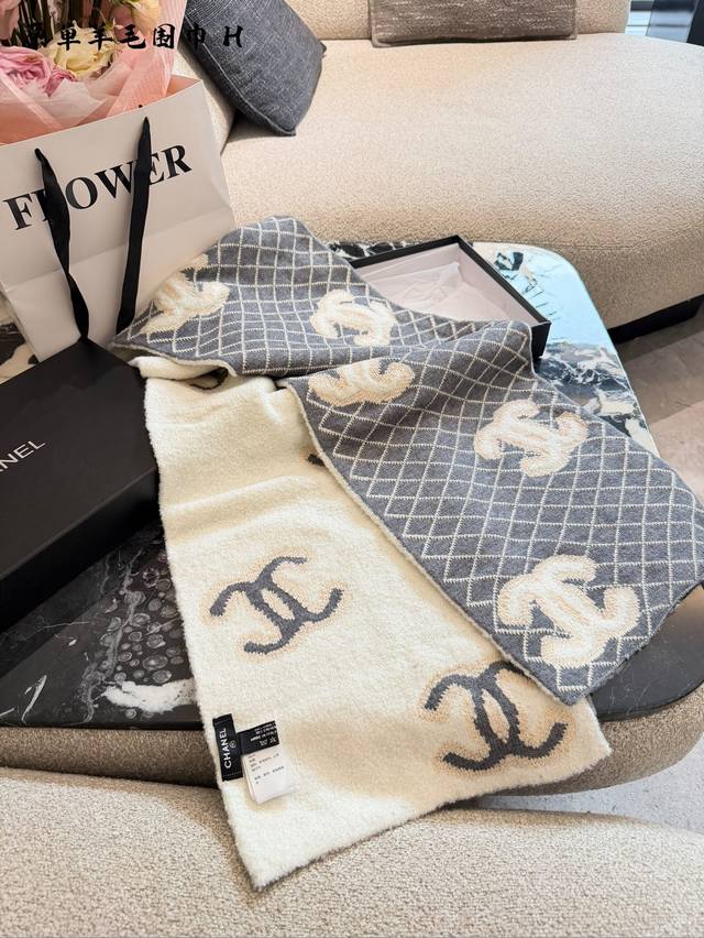 香奈儿菱格针织围巾秋冬必备谁用谁知道 DDD 香奈儿Chanel 新款大号Logo设计,搭配经典菱形格纹,超软糯围巾 DDD