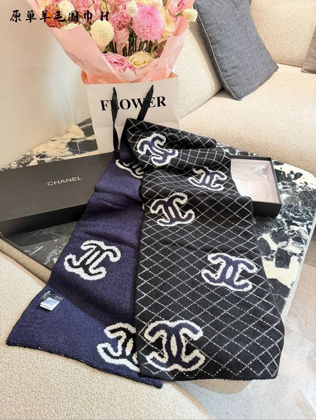 / 香奈儿菱格针织围巾秋冬必备谁用谁知道 香奈儿Chanel 新款大号Logo设计,搭配经典菱形格纹,超软糯围巾