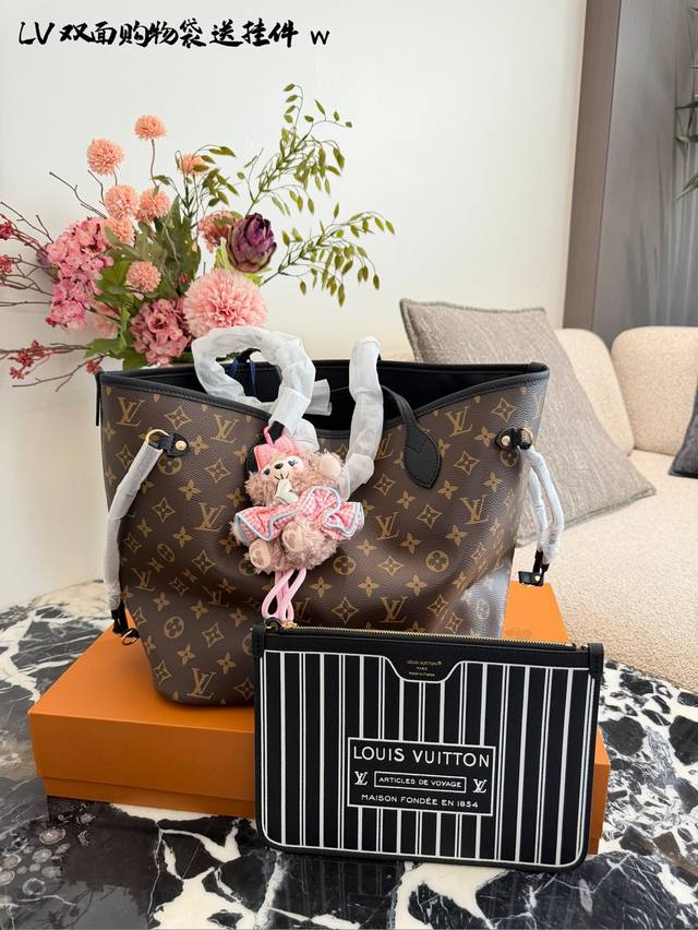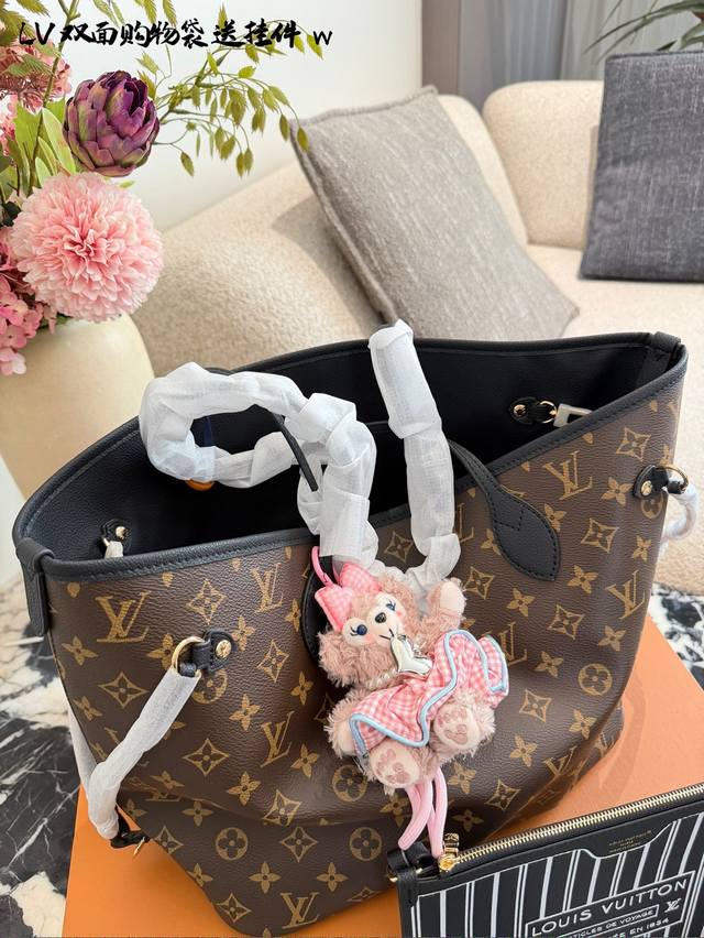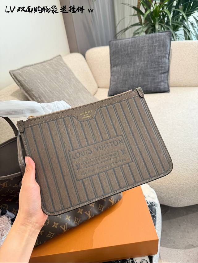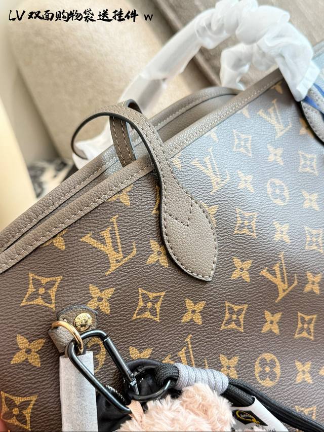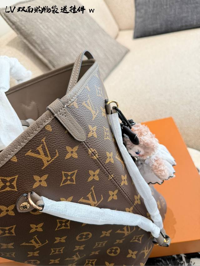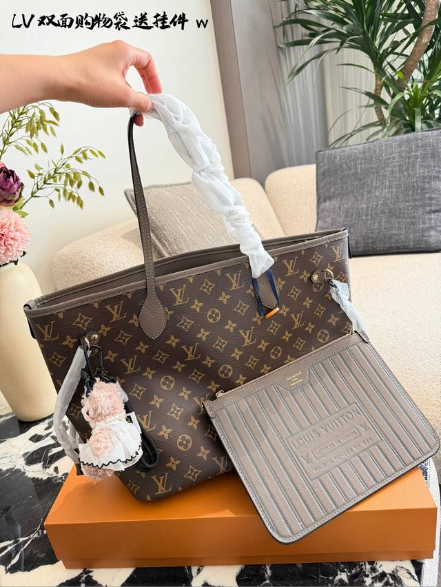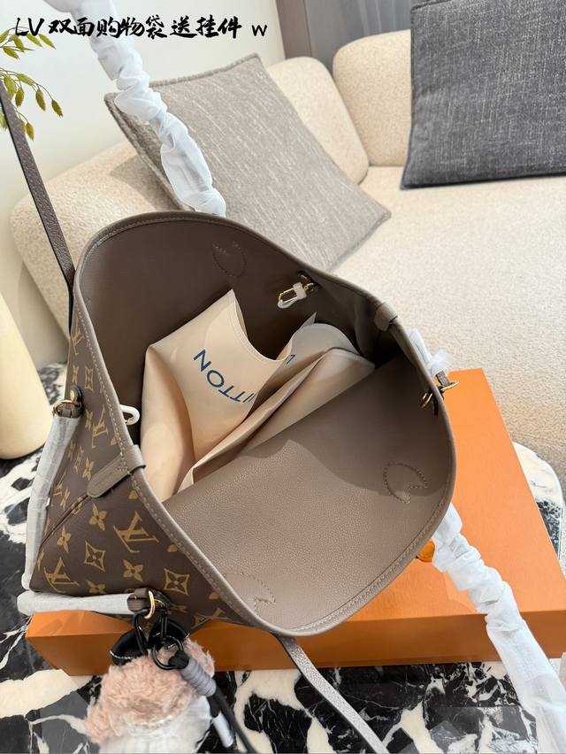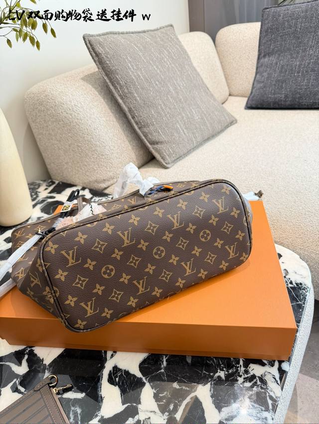 变码芯片 DDD Lv Neverfull双面托特包 DDD Lv Neverfull双面托特包,经典Monogram老花帆布 +牛皮饰边,双面可用,- -面老花一面牛皮,随心切换风格十。中号尺寸,容量超大,通勤旅行都Ok30×32双盒 DDD