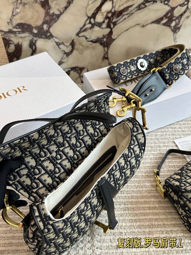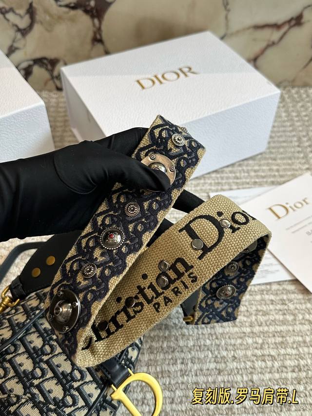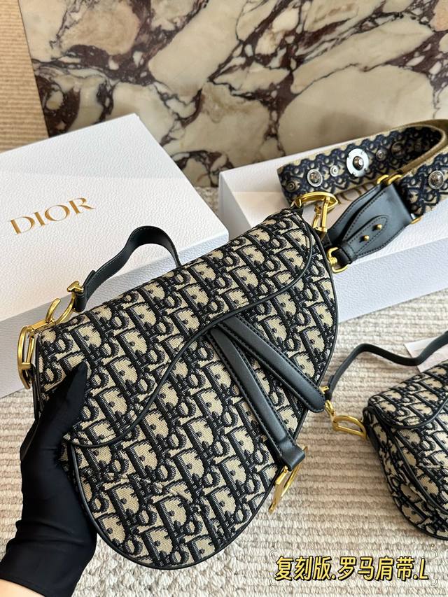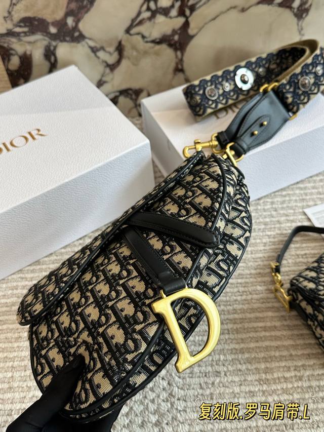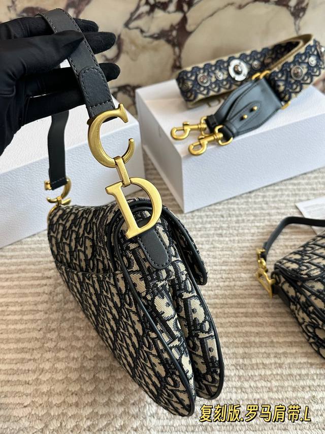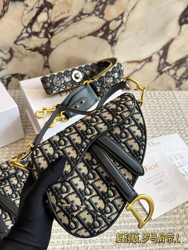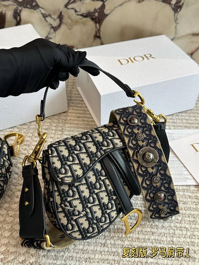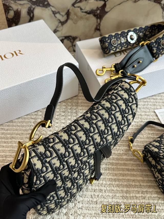 240 配盒 罗马肩带 尺寸:25Cm*20Cm 大 18Cm*15Cm 小 升级版出货 D家 老花马鞍包 配深蓝色牛皮长肩带 搜索Dior 迪奥