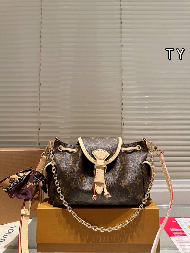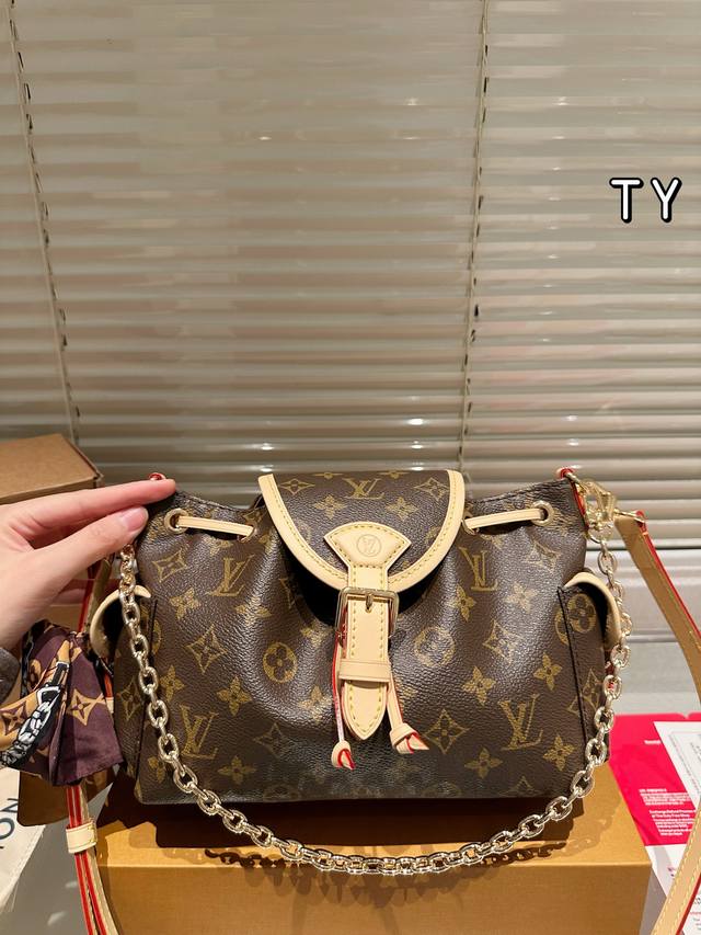 复刻版 配丝巾 Lv Odyssee双肩包 新款 老花小号Bb双肩包 顶级牛皮 原单品质 尺寸 23 17Cm