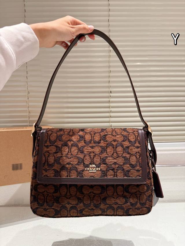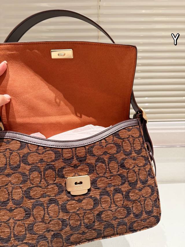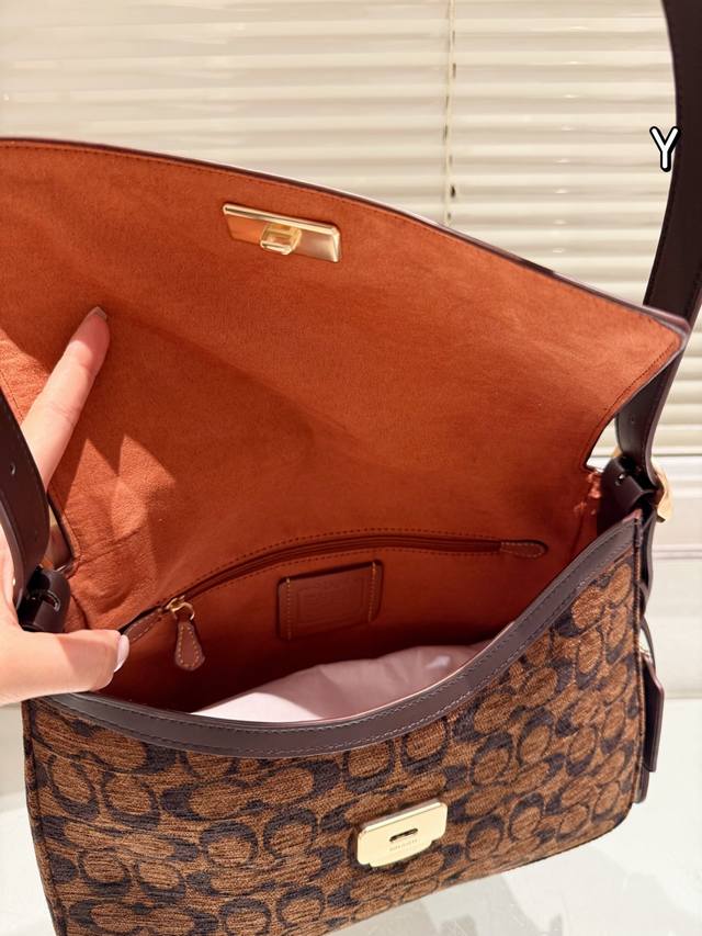 Coach Etta大号腋下包 DDD Coach Etta大号腋下包,经典老花帆布+棕色皮革饰边,复古优雅气质满分;。尺寸29.5X20.5X11.5Cm,容量大,通勤日常都很Ok!内部有拉链袋,收纳方便,推锁开合更安全。肩带可调节,腋下背Or斜挎都好看,秋冬搭配超有氛围感 。轻便耐用,实用又时髦,日常出街必备! DDD