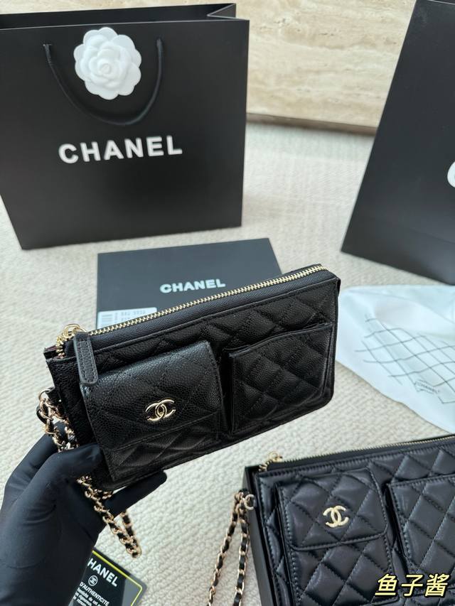 鱼子酱配盒 DDD Size:20*12Cm Ddd Chanel香奈儿23B新款黑金手拿包