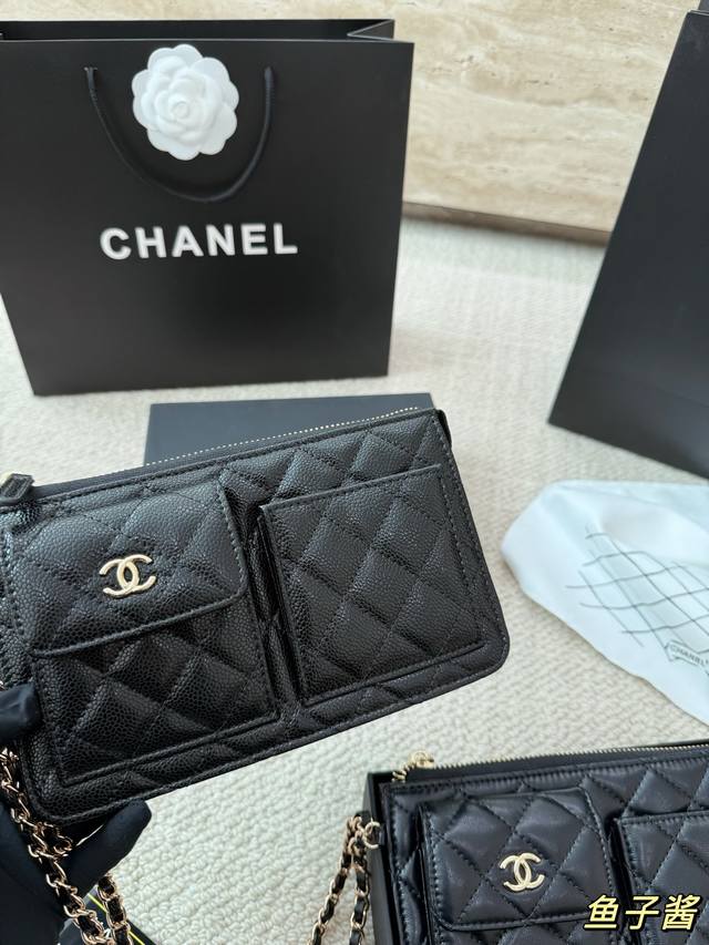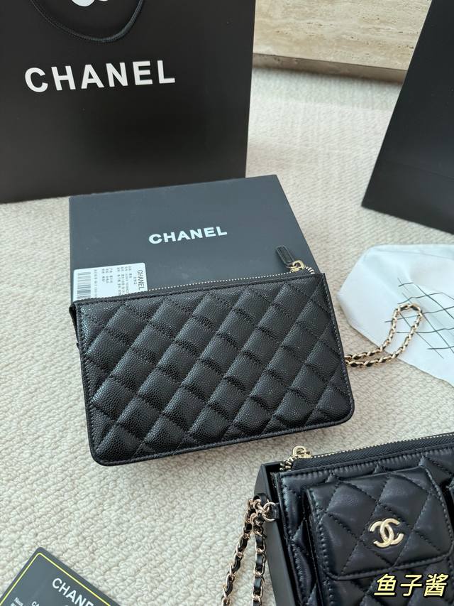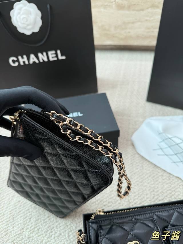/ 鱼子酱配盒 Size:20*12Cm Chanel香奈儿23B新款黑金手拿包