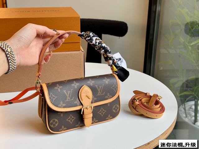 礼盒包装 升级复刻版! Size:19*10Cm Lv 小迷你 Diane 法棍手袋 经典老花 小号Mini 法棍包是真好看 又好背! 皮质和颜色都不错, 配置