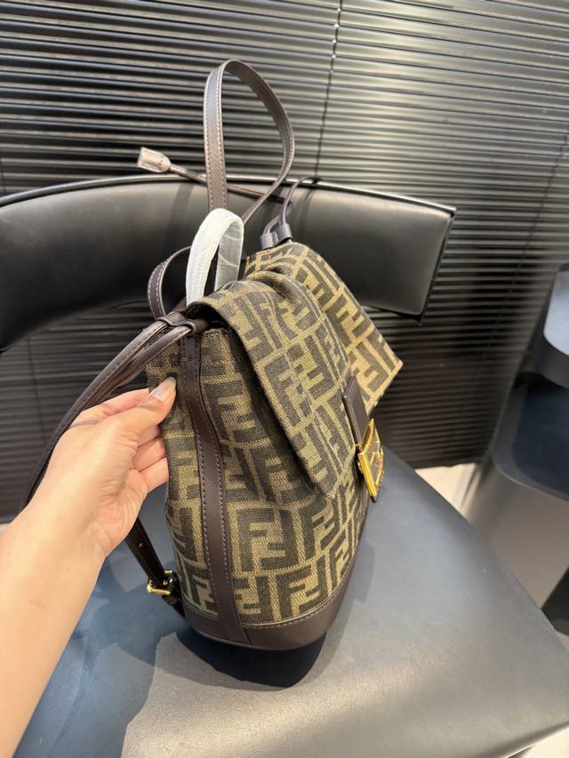 / 配折叠盒Fendi|复古感双肩包 看图的时候已经被疯狂种草的双肩包 实物果然不负众望啊 超大容量包身 日常出门或旅游都超实用 重点是!!! 大个子、小个子背都超
