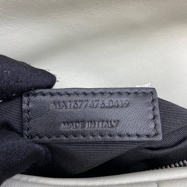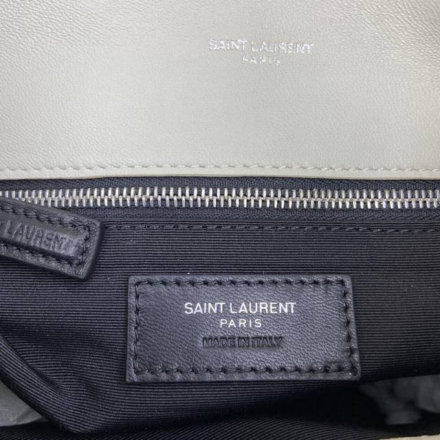 原厂皮 Ddd 白羊皮 古银 Ddd Loulou puffer 中号绗缝小羊皮包,原厂正品皮制作,手感柔软细腻,犹如怀抱云朵般的感受经典的Y家Logo、链条及扣眼五金均采用巴金哑光银五金,包袋开口处折叠后使用了磁性四合扣封口,密闭性及安全性一流 Ddd 尺寸:29X17X11Cm Ddd 型号:577476 原厂皮 DDD