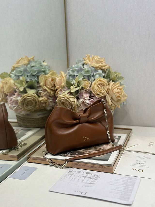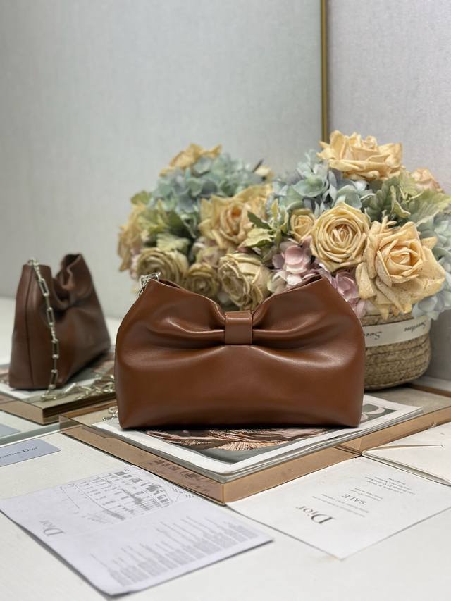正品级 ,高版本 Ddd Dior-Lambskin 2026春夏 新款手袋 棕色 浅金链 Ddd Lambskin链条包,全新的包形,小牛皮革的质感,优雅大气,款式实用,可收纳各种日常用品,是日装和晚装的理想良伴。可拆卸链条以蝴蝶结点缀更显精致,可手提或斜挎。 Ddd 型号:0714 Ddd 尺寸:27×8×18Cm 长×宽×高 DDD DDD