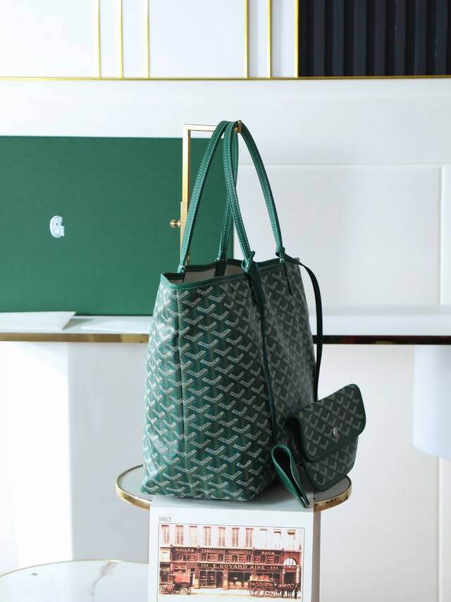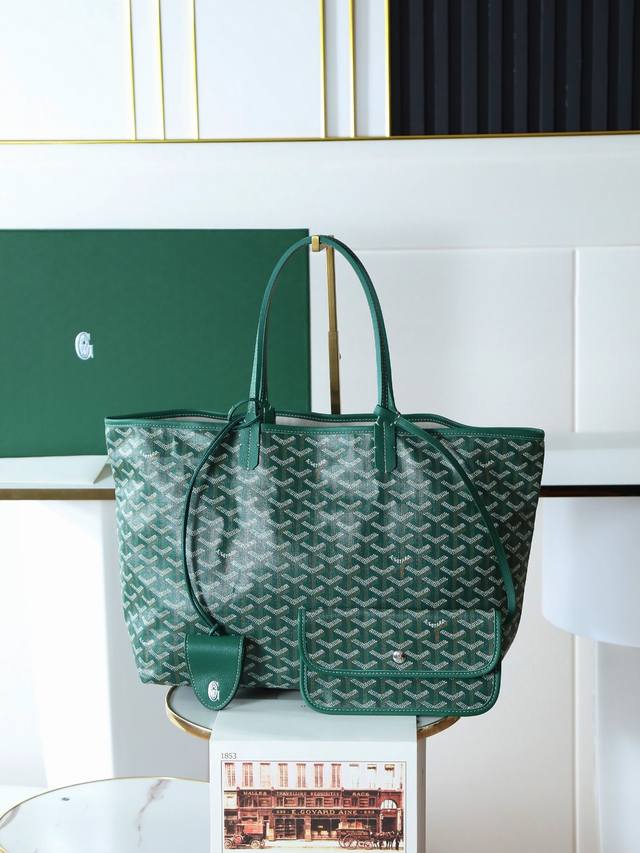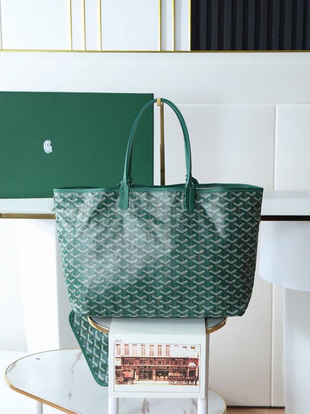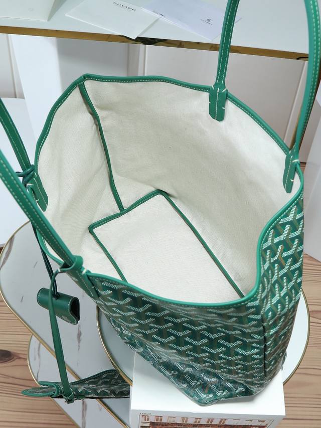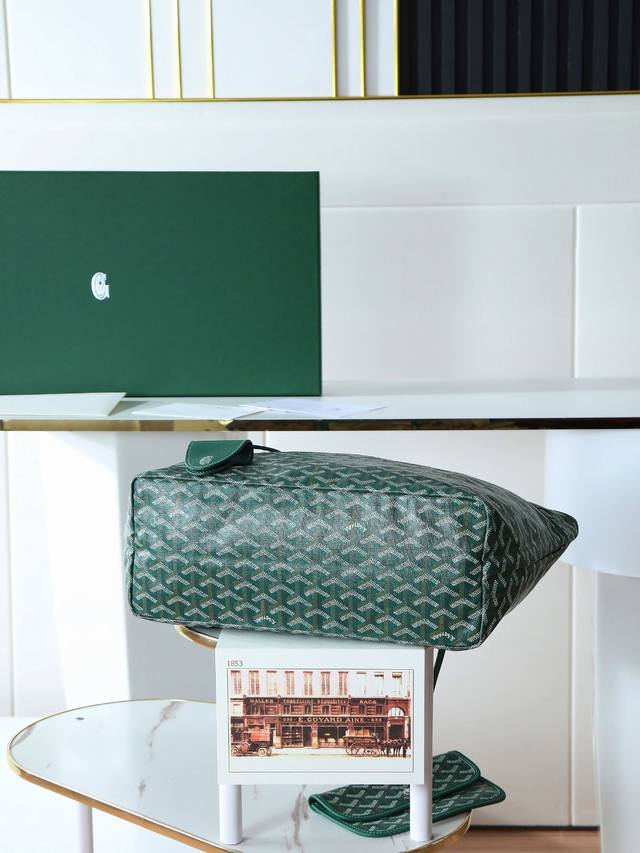 特级品质 原厂料 Saint Louis 小号购物包,采用 Goyardine 帆布制成,无衬里,柔软而轻盈,可双面使用,正面为 Goyardine 帆布材质,另一面为棉麻针织材质。两个皮革提手从细变粗,支持多种背法。它带有一个可拆卸内袋,挂在包的一个提手上,方便快速取用。 DDD 28 Cm X 15 Cm X 34 Cm DDD 配礼品袋,020146M绿色 DDD