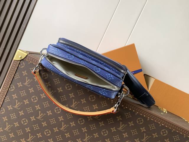 M26823蓝色 顶级原单 变码芯片163C 本款 Nil 邮差包取材 pharrell Williams 焕新演绎的 Damoflage Black 涂层帆布,将设计师的新锐视角与品牌传统创意融合,呈现迷彩般的像素效果 Damier 图案。拉链前袋与主隔层完善功能构型。25.0 X 17.5 X 11.0 厘米 长 X 高 X 宽 Ddd Damoflage Black 涂层帆布 Ddd 牛皮革饰边 Ddd 织物内衬 Ddd 金属件 Ddd 拉链开合 Ddd 可拆卸金属牌 Ddd 侧扣 Ddd 拉链前袋