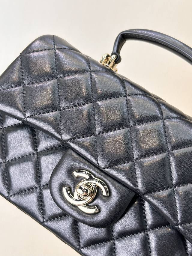 2431 皮料手柄款实拍图,意大利进口的小羊皮面料,纯钢五金材质的锁扣及手柄!香槟金五金链条虽然是Mini号但是容量是绝对够用的!能够轻松容纳puls系列的手机