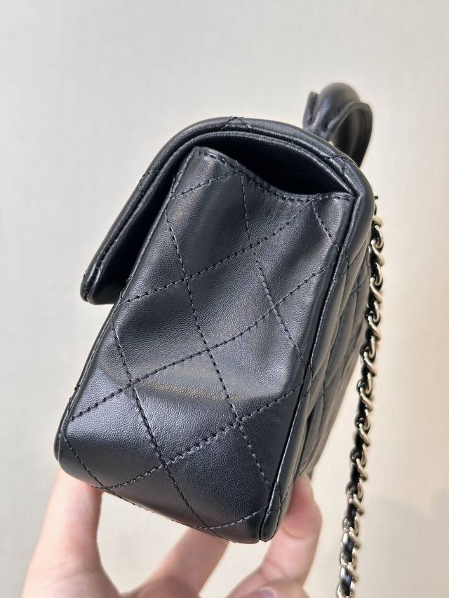/ 2431 皮料手柄款实拍图,意大利进口的小羊皮面料,纯钢五金材质的锁扣及手柄!香槟金五金链条虽然是Mini号但是容量是绝对够用的!能够轻松容纳puls系列的手机