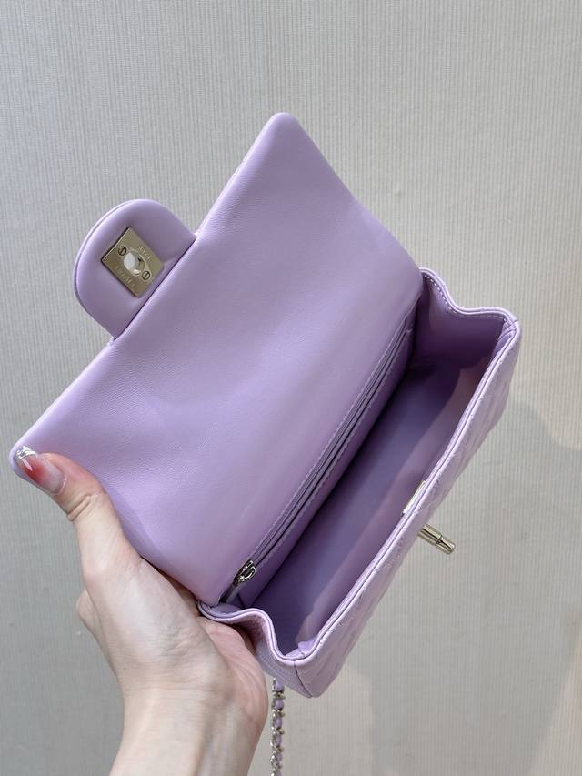 A96125 Chane1 新款 Logo手提 单肩斜挎口红包 小牛皮配金色金属 让人一眼就能感觉到清新脱俗的时尚气息 17Cm