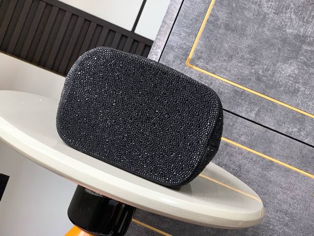 批910 大号型号:1030# mini Locò仿水晶装饰手袋 -Vlogo Signature施华洛世奇仿水晶装饰 -配可拆卸提手和可拆卸滑动式链条,可肩背
