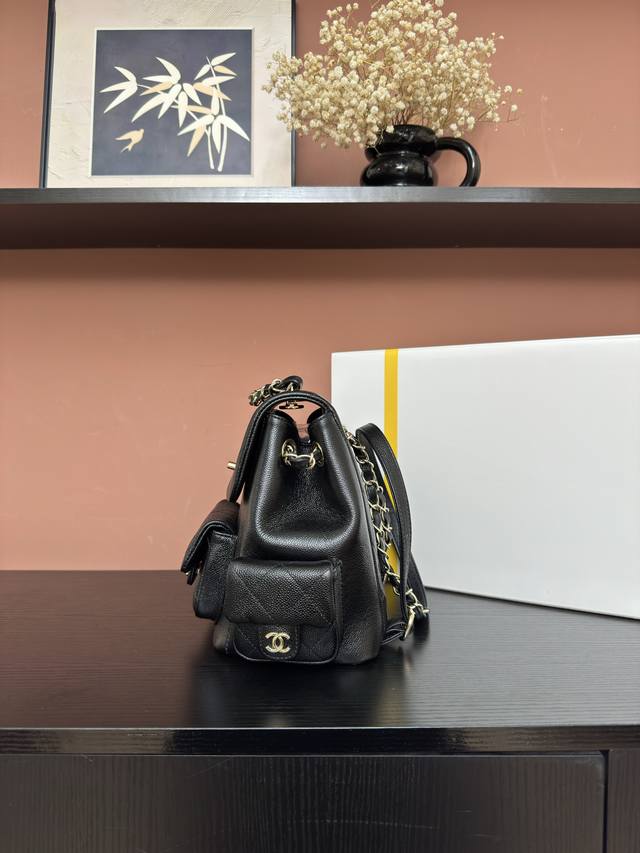 图片大号 Chanel 23K 背包双肩包 DDD As4398#黑色球纹浅金独家背景 DDD 实物实拍顶级质量货尺寸21.5*19.5*12Cm DDD