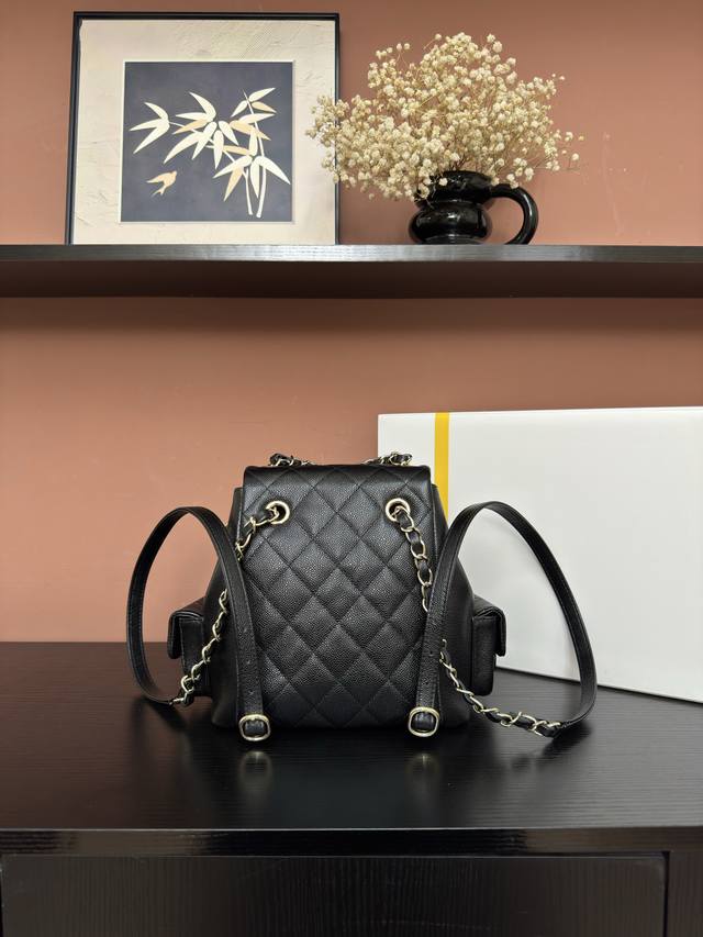 / 图片大号 Chanel 23K 背包双肩包 DDD As4398#黑色球纹浅金独家背景 DDD 实物实拍顶级质量货尺寸21.5*19.5*12Cm DDD