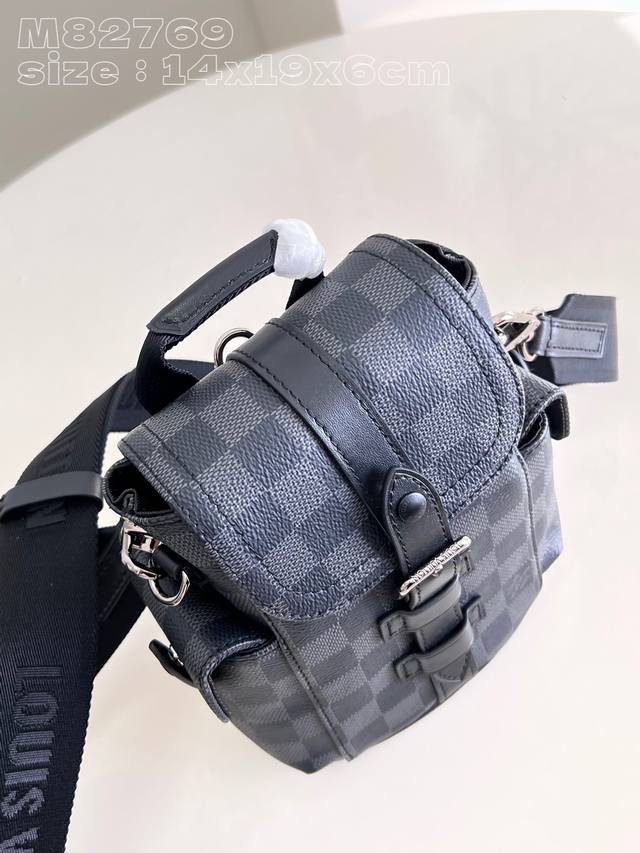 / 顶级原单 独家实拍 M82769黑格 本款 Nano Christopher 手袋巧妙浓缩路易威登经典 Christopher 双肩包的精髓,考究再现侧袋、弹簧