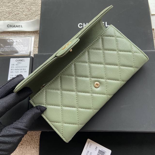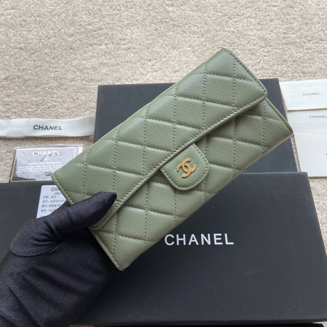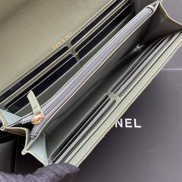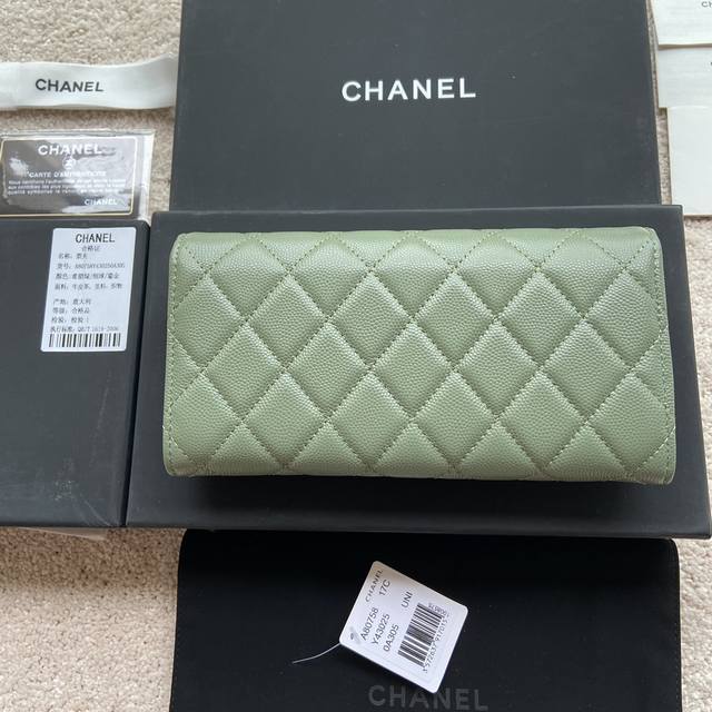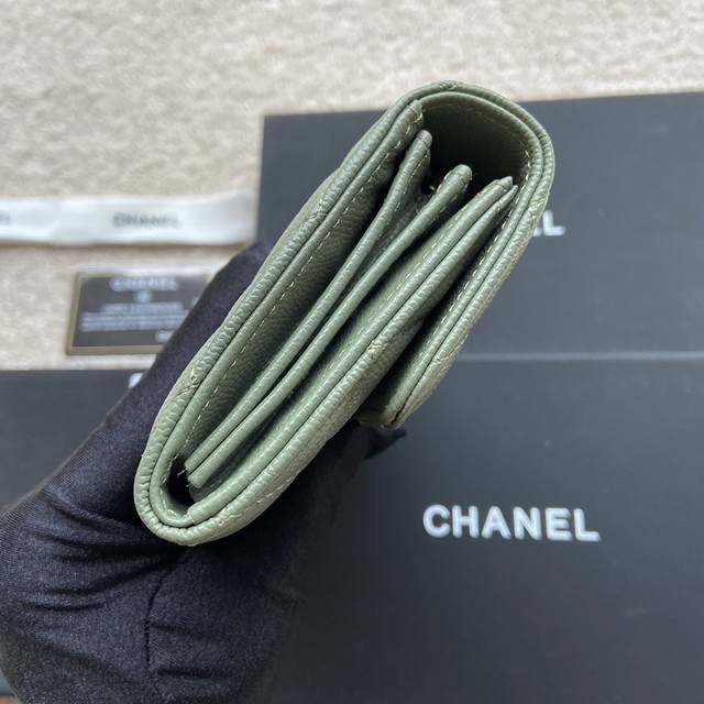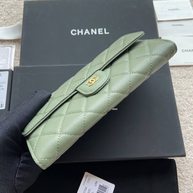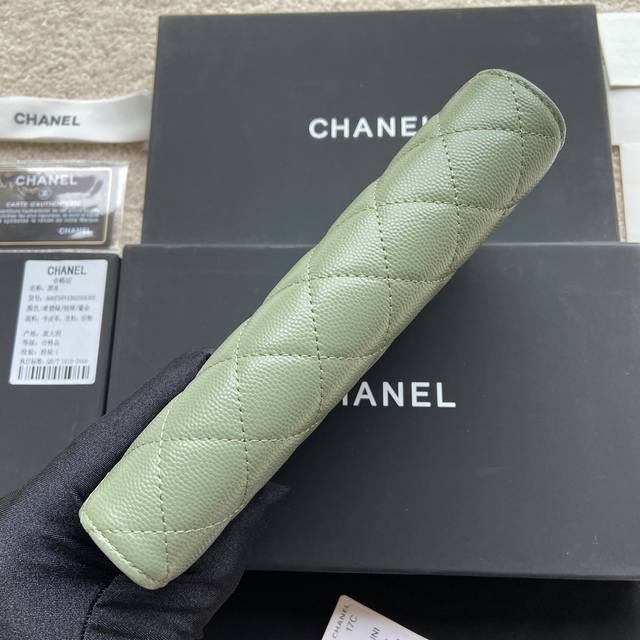 小香进口意大利颗粒小牛皮 货号:A80758 尺寸:W19×H10.5×3Cm 颜色:绿色细球纹皮金色钢唛