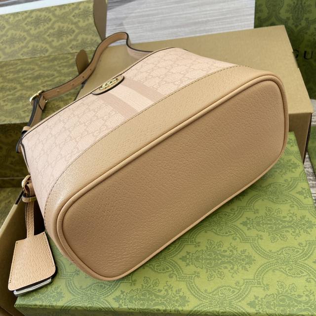 配全套包装 这款小号肩背包以别出心裁的设计焕新诠释ophidia系列,将开口式水桶包与肩背包款式融于一体。这款设计采用品牌标志性的米色和乌木色配色gg Supr