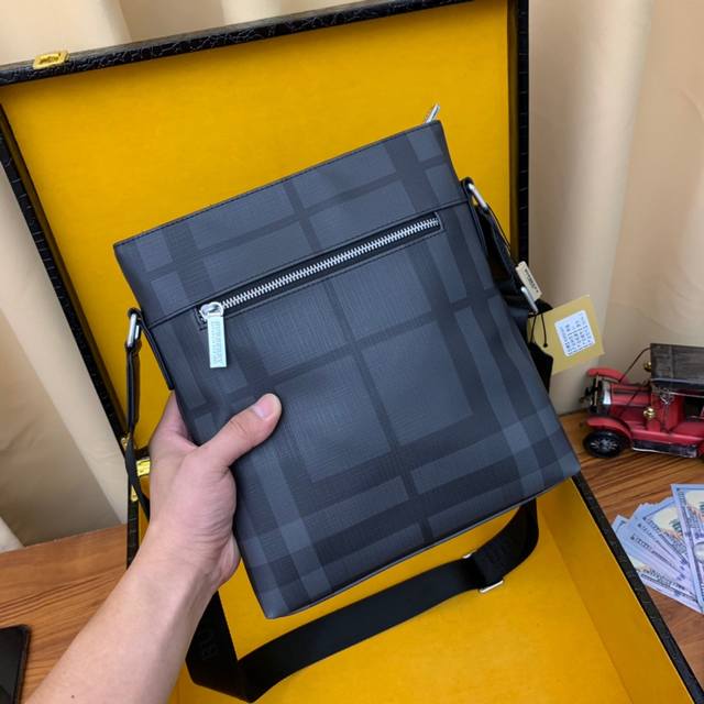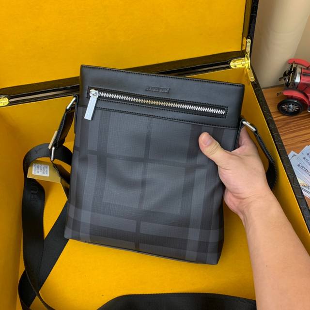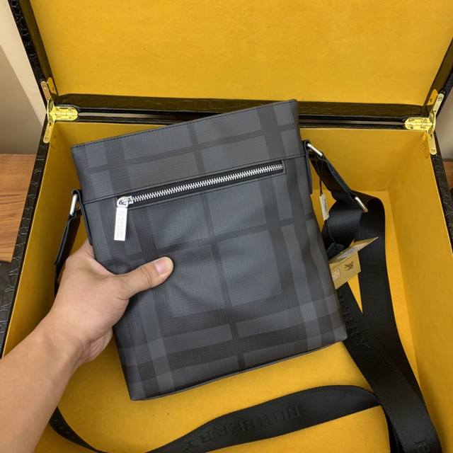 / 批 巴宝莉 型号33093黑色 Burberry独家新款 斜挎包 尺寸 24X27X6Cm 高端品质 原单正品 独特的品质时尚的设计精致的手工构制潮男必备专柜货