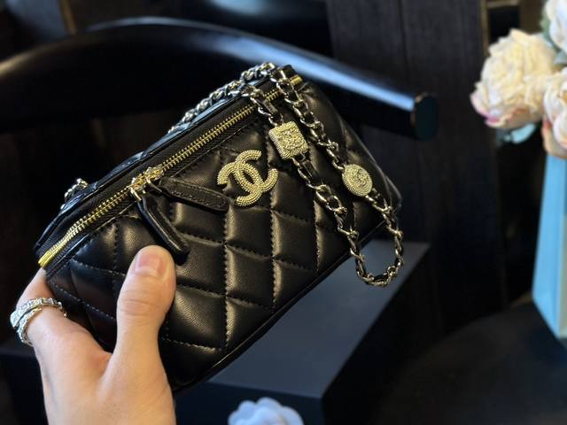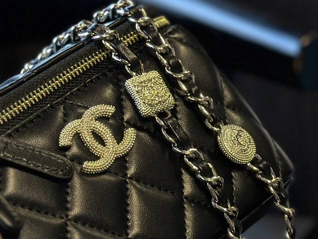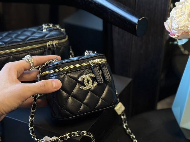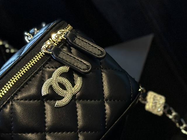 Chanel 24K 水钻盒子包 做到全球断货就是它,Chanel盒子包没错了,又是香奈儿因为太火爆,都卖光光了小巧的包型和可爱的小金球哪个女孩不爱呢 经典的黑金色搭配鱼子酱牛皮质感舒服而细腻链条上的小金球也是质感满满e