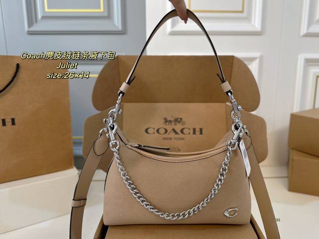 / 飞机盒 Size:26×14 Coach蔻驰新款juliet麂皮绒链条腋下包 双肩带设计 多种自由搭配背法 麂皮绒面料,真的很高级 自重很轻 斜挎很有松弛感 空