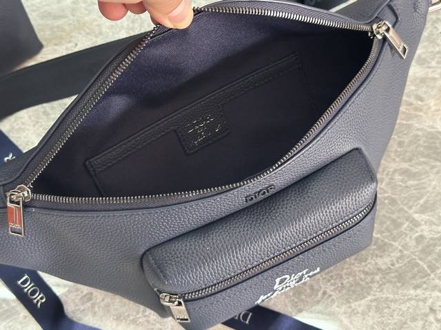这款 Rider 2.0 腰包来自Dior And Hylton Nel 限定系列。采用海军蓝色粒面牛皮革等材质精心制作,正面拉链口袋饰以来自 Dior And Hylton Nel联名系列的白色Dior For My Real